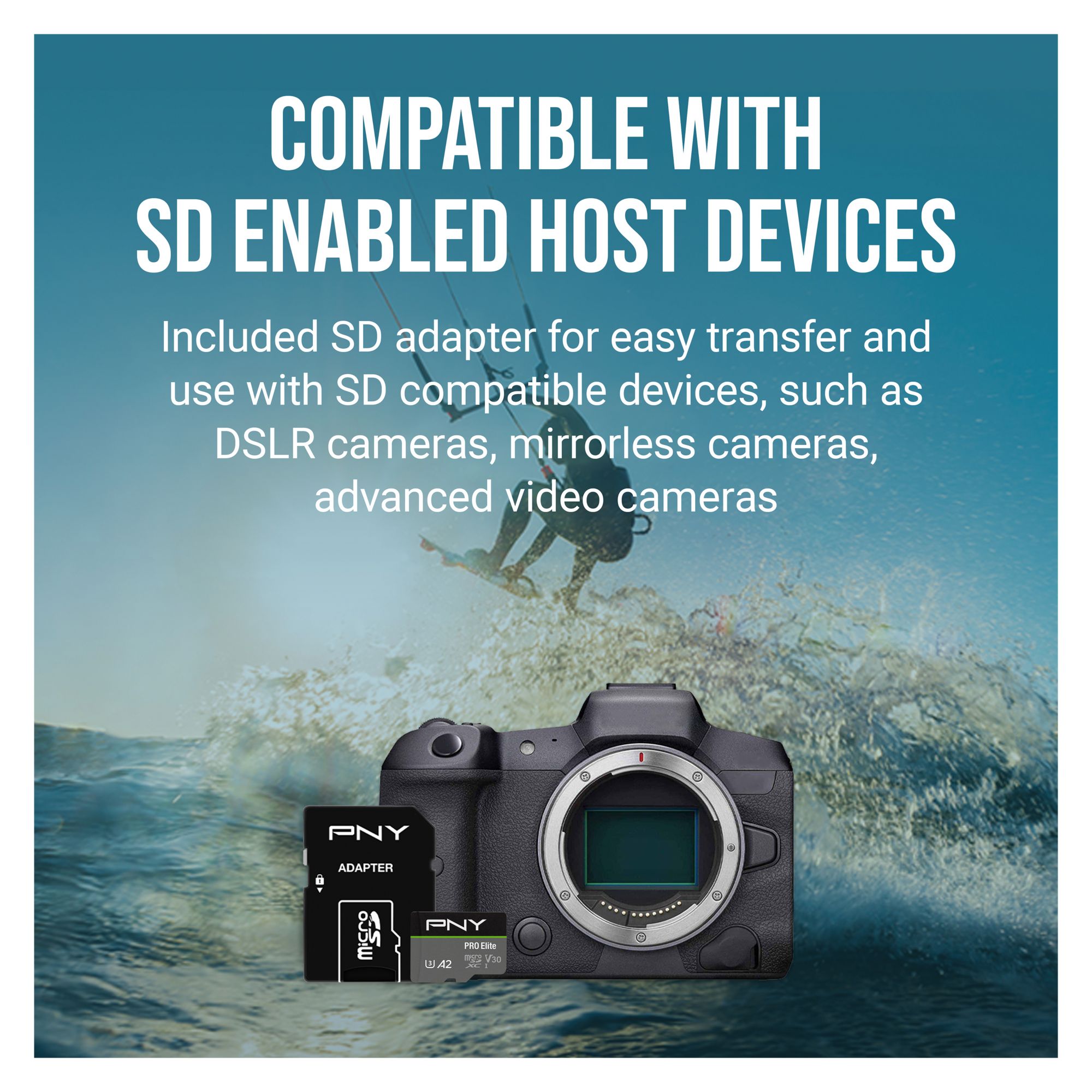 Included SD adapter for compatibility with SD-enabled host devices including DSLR cameras, video cameras, desktops, and laptops