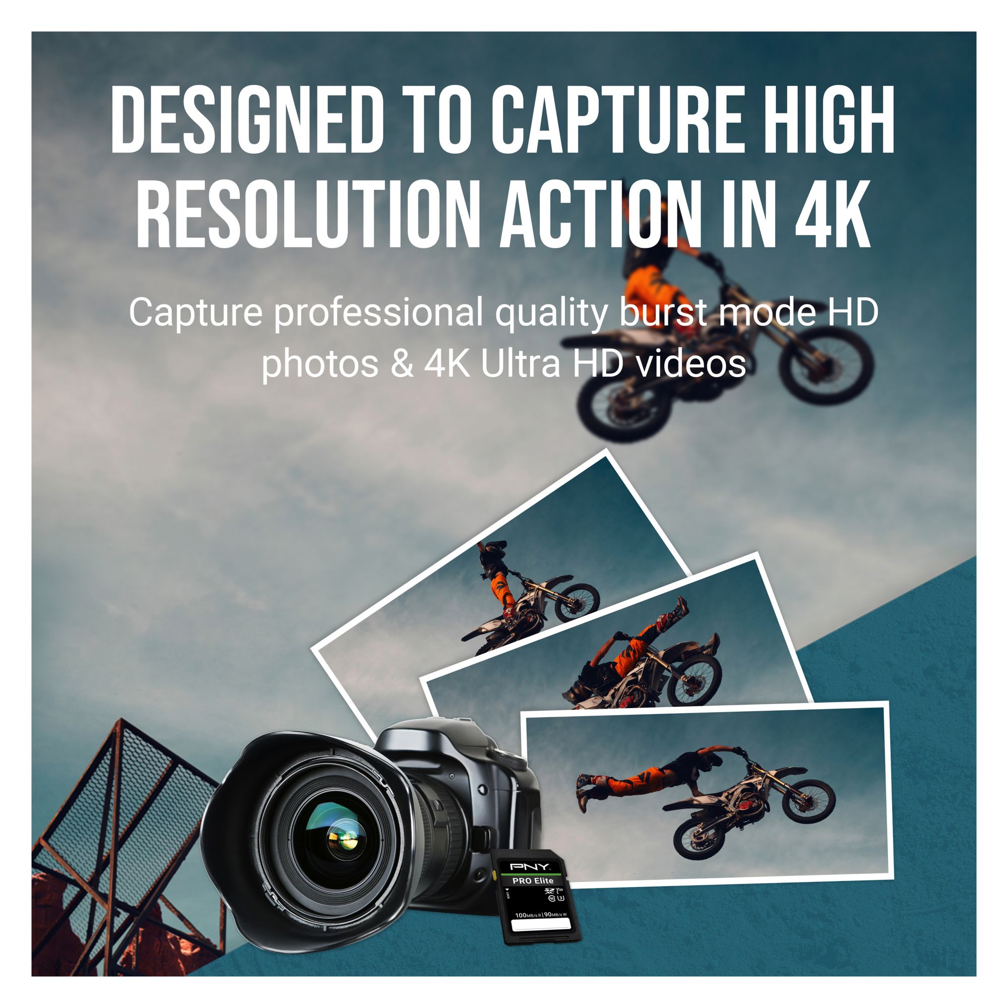 The PNY PRO Elite Class 10 U3 V30 SD Flash Memory Cards offer extreme performance for photography and videography professionals. Featuring Class 10, U3 technology with read speeds of up to 100MB/s and write speeds of up to 90MB/s, users can easily shoot, store, and share high-resolution digital content. The PRO Elite SD Flash Memory Cards are ideal for capturing stunning 4K Ultra HD videography and burst mode HD photography on point-and-shoot cameras, DSLR cameras, and standard and advanced HD-enabled video cameras. The V30 Video Speed ensures users can capture uninterrupted 4K Ultra HD video at 4096x3072 format on the latest 4K Ultra-HD devices. The PRO Elite Class 10 U3 V30 SD Flash Memory Cards feature top-notch speeds, making them the ideal card to capture digital memories that will last a lifetime.