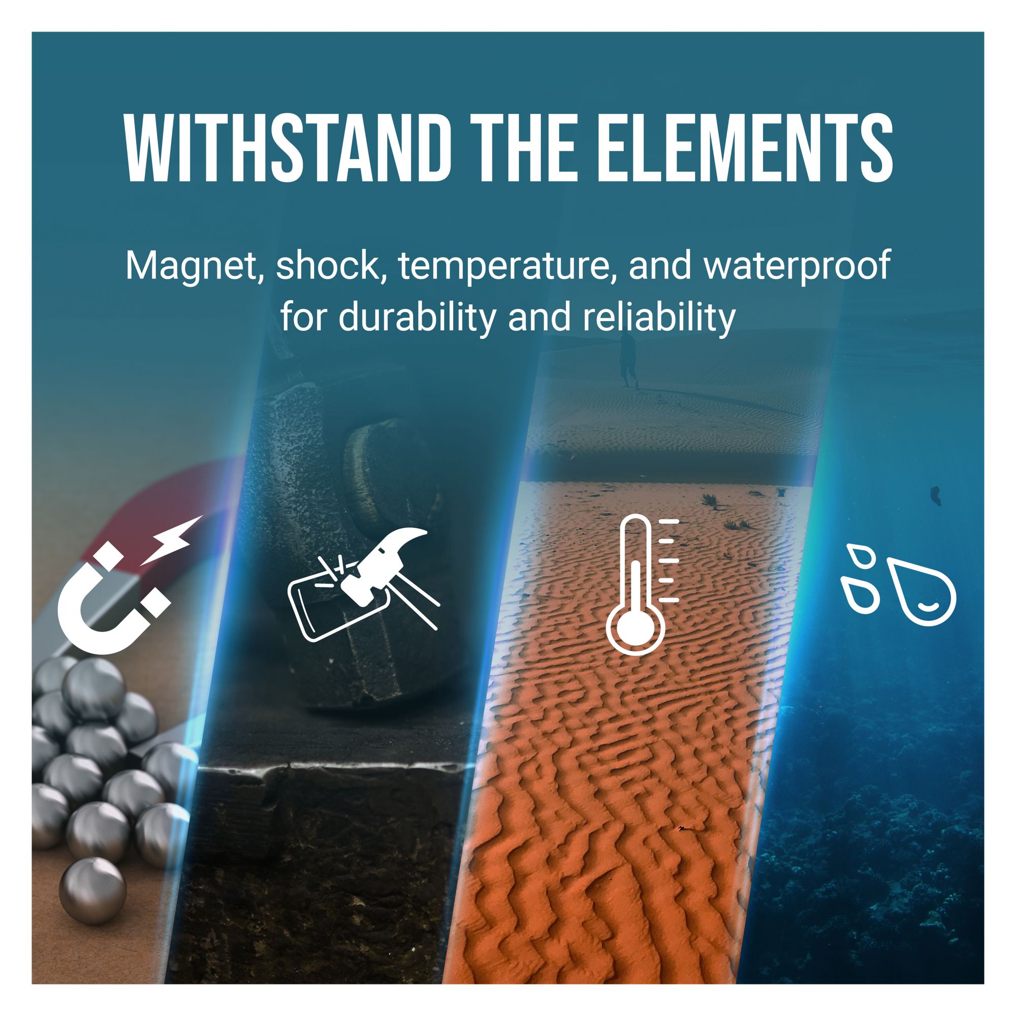 Reliable and durable: magnet proof, shock proof, temperature proof, waterproof
