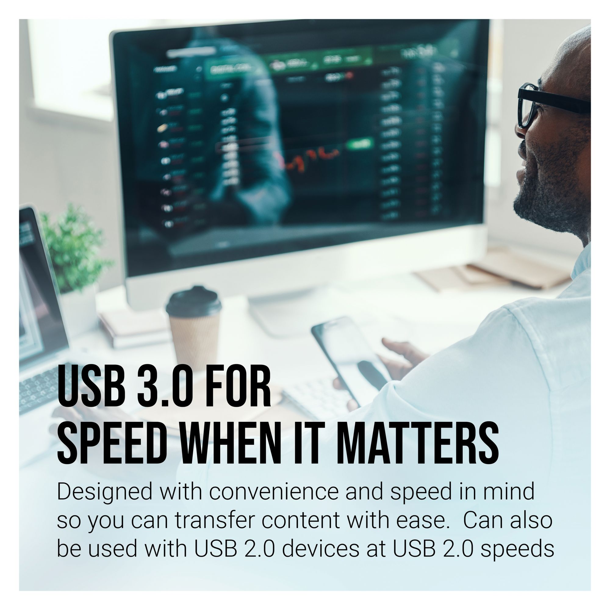 Compatible with USB 3.0 host devices at USB 2.0 speeds