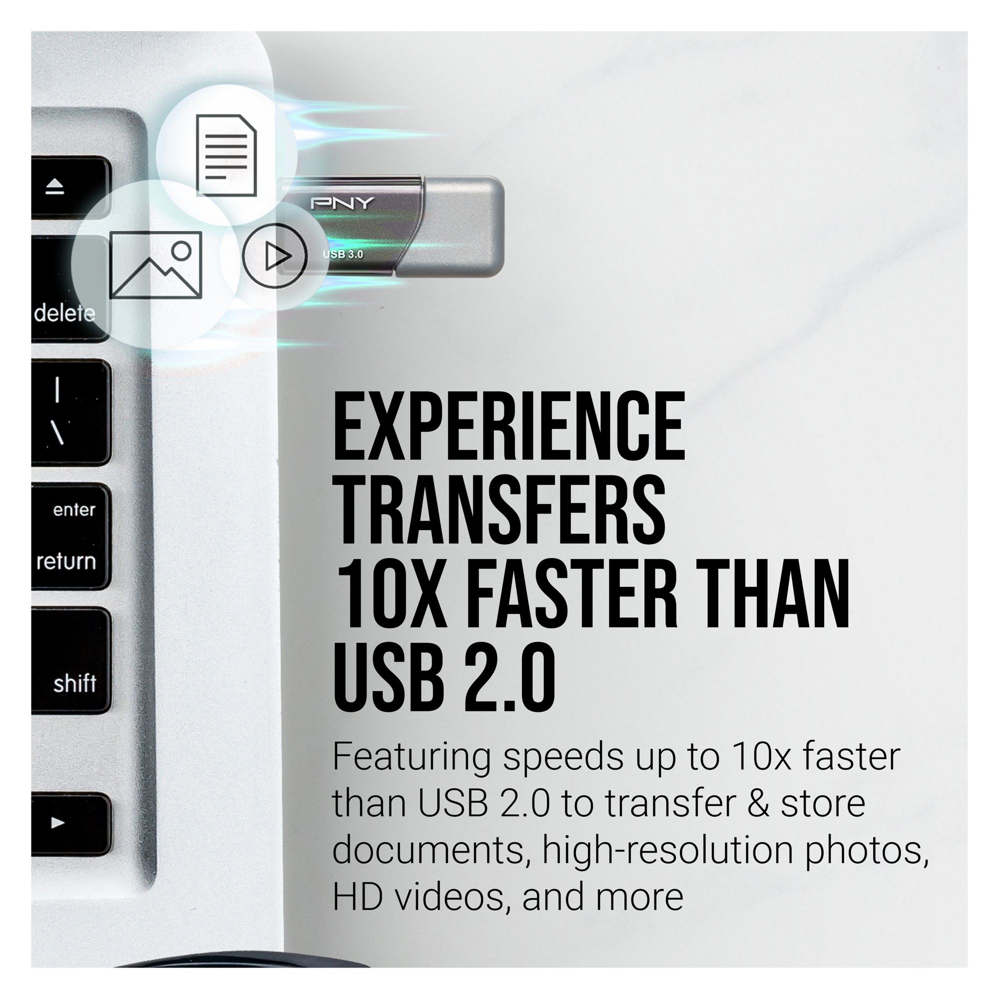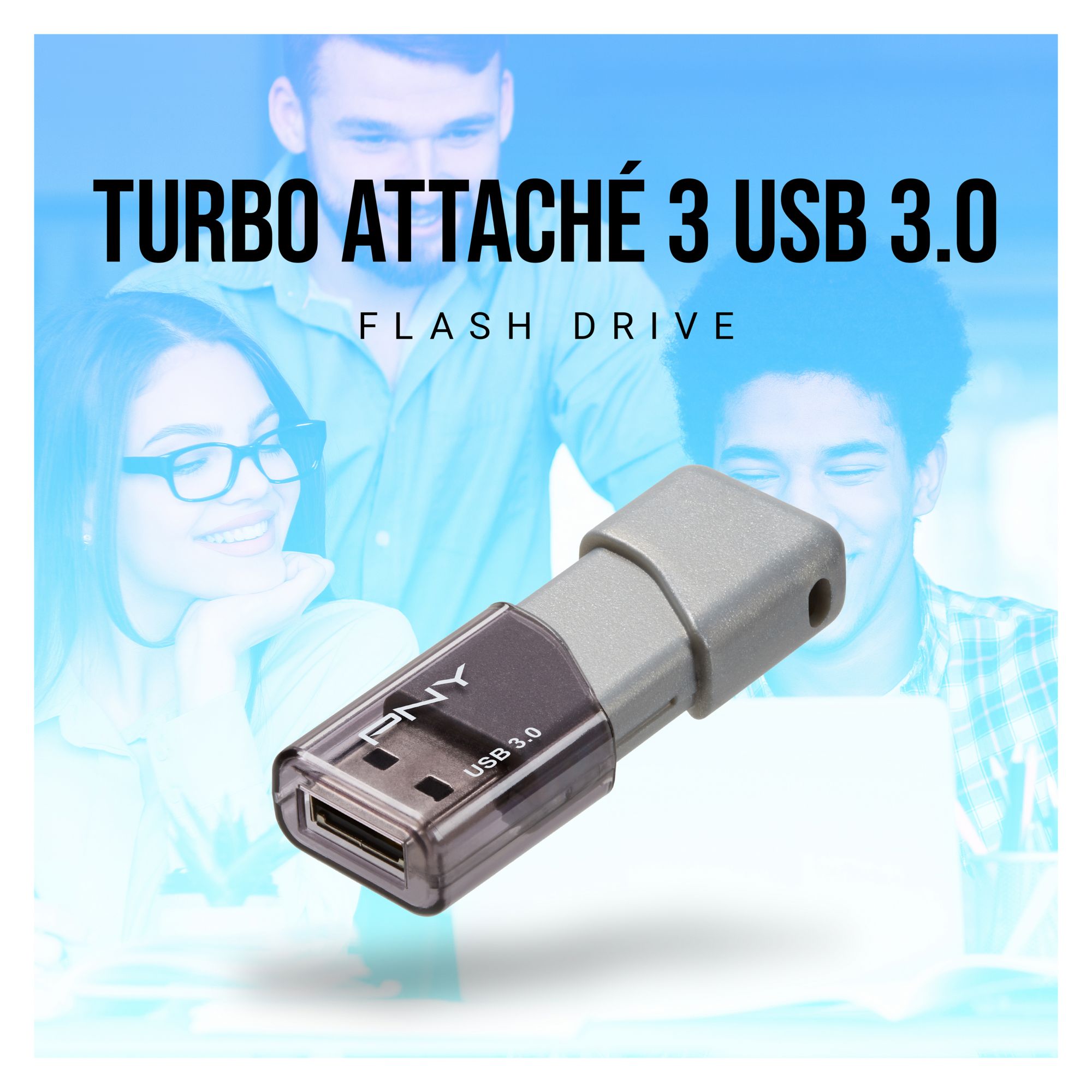 PNY’s Turbo Attaché 3 USB 3.0 is built for speed and convenience. Experience USB 3.0 next-generation speed performance with transfer speeds up to 10x faster than USB 2.0. It's the perfect solution for easily storing and quickly transferring all your large documents, high-resolution photos, HD videos, and more. USB 3.0 offers the same ease-of-use and plug-and-play capabilities as previous generations of USB technologies but with exceptional speed improvements. Designed for reliable portable storage, PNY's Turbo Attaché 3 USB 3.0 Flash Drive is designed with convenience and portability in mind. This portable lightweight flash drive incorporates a capless, sliding collar design, which means no more lost caps. This USB 3.0 Flash Drive is small in size but big in performance.