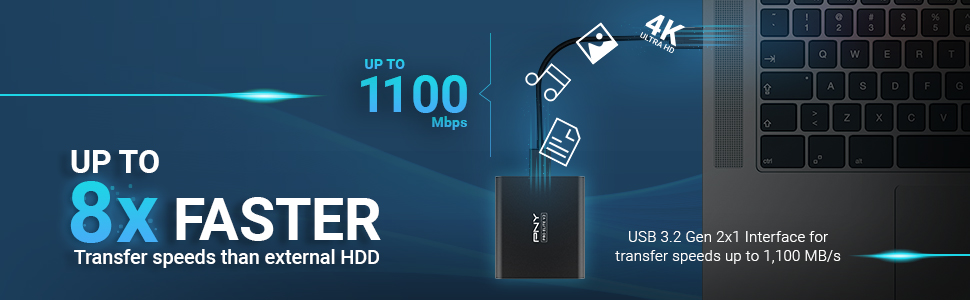 Data transfer rates: Transfer speeds of up to 1,100mb/s read and 1,000mb/s write