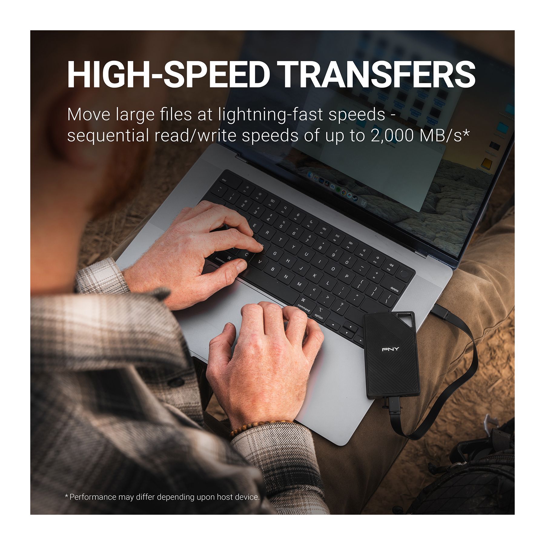 High-speed transfers: Move large files at lightning-fast speeds - sequential read/write speeds of up to 2,000MB/sec. and 1,800MB/sec.