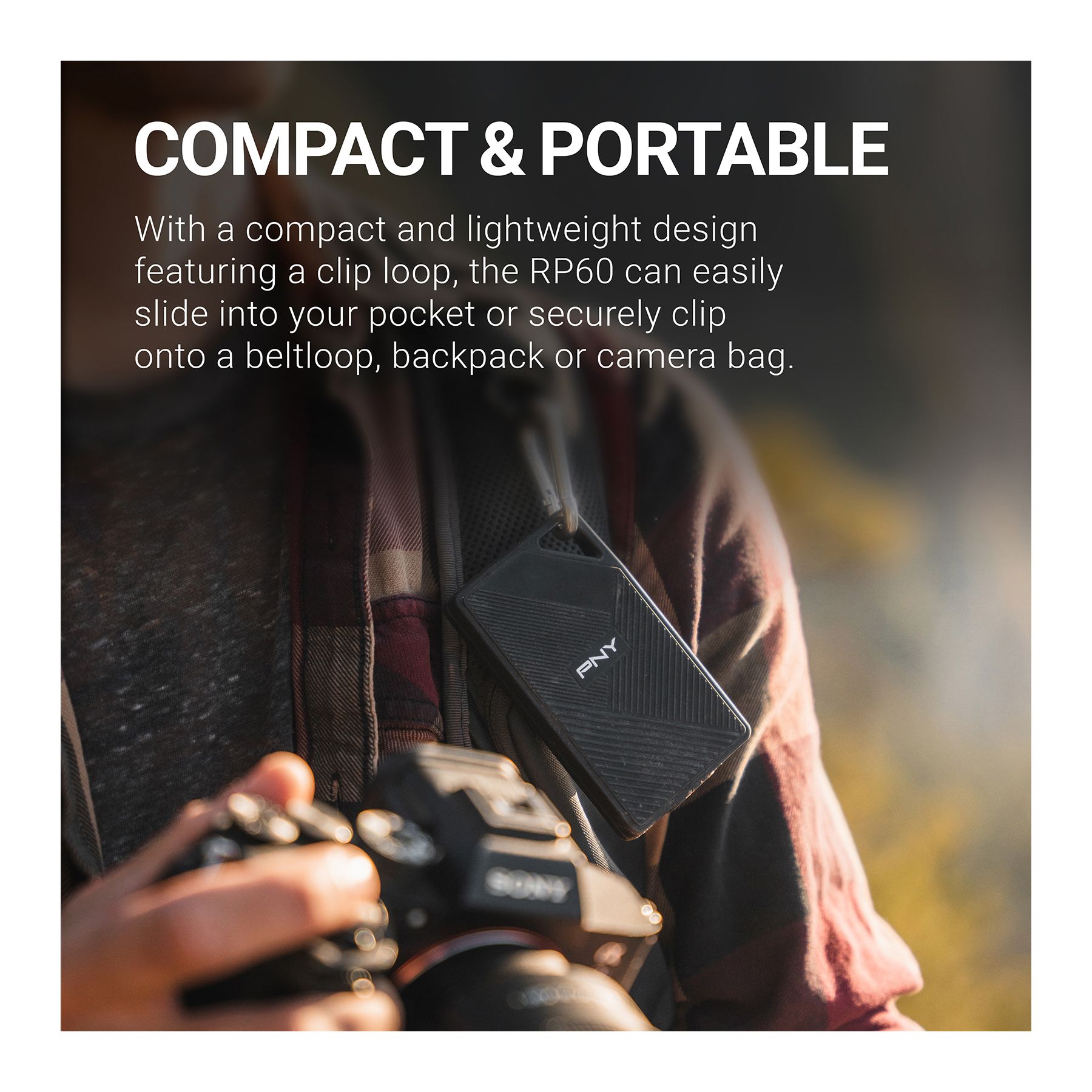 Compact and portable: With a compact and lightweight design featuring a clip loop, the rp60 can easily slide into your pocket or securely clip onto a beltloop backpack or camera bag