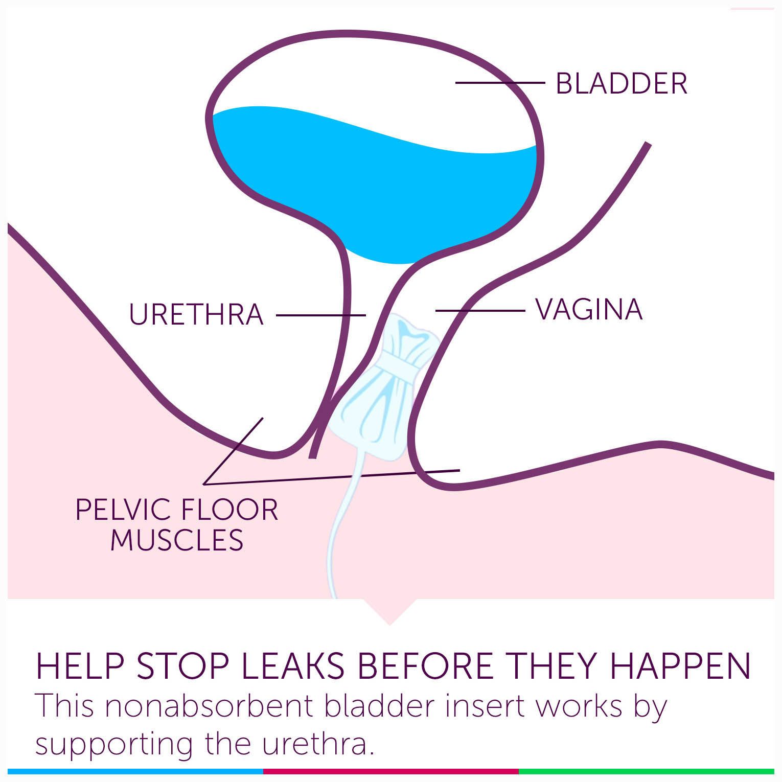 Contains size 1, size 2 and size 3 bladder supports, 2 of each Gently lifts and supports the urethra to help stop bladder leaks associated with Stress Urinary Incontinence (SUI) Small, non-absorbent support inserts easily and may be worn for up to 12 hours in a 24-hour period FDA-approved, gynecologist-tested and FSA-eligible Can eliminate the need for bulky, bladder control pads Includes 6 bladder supports