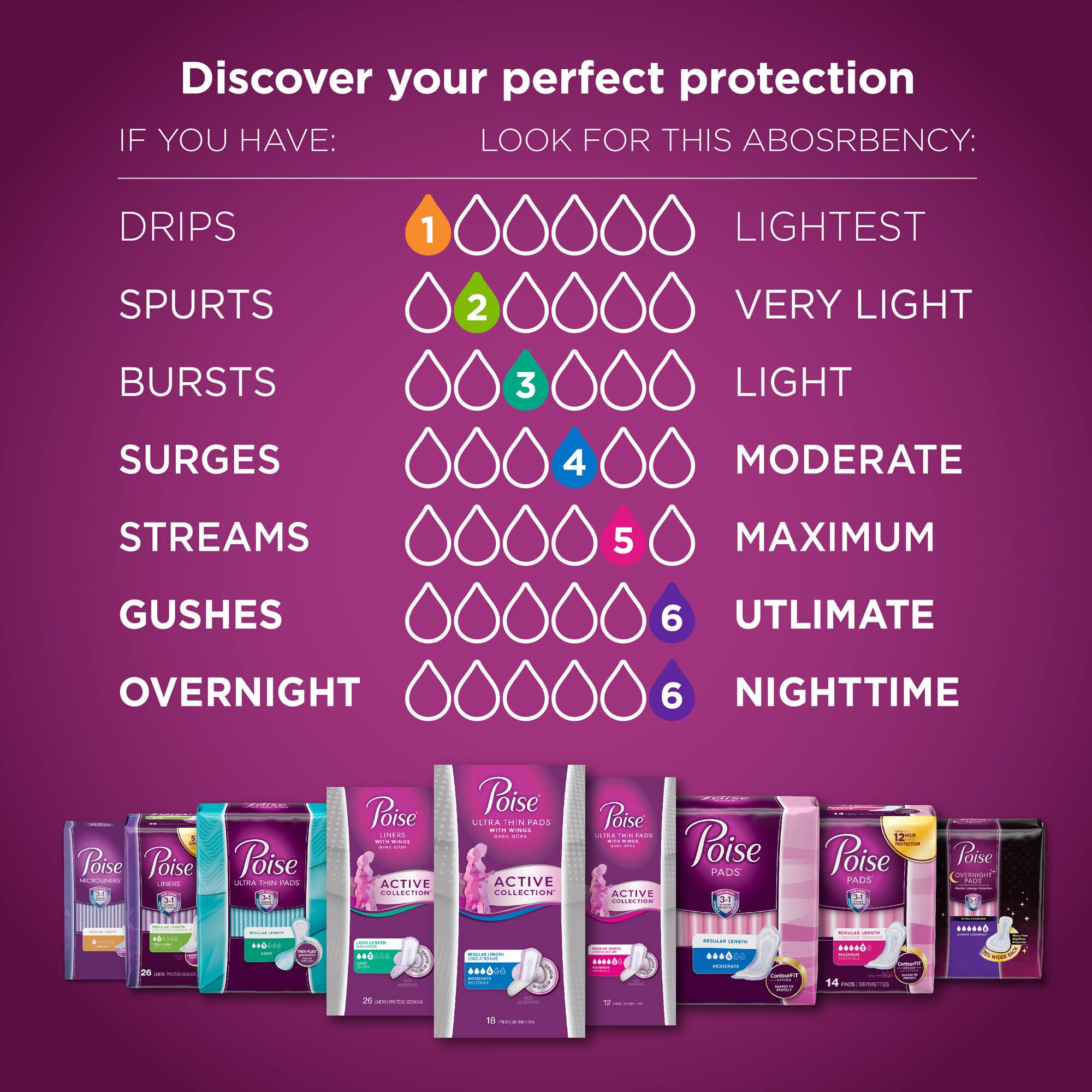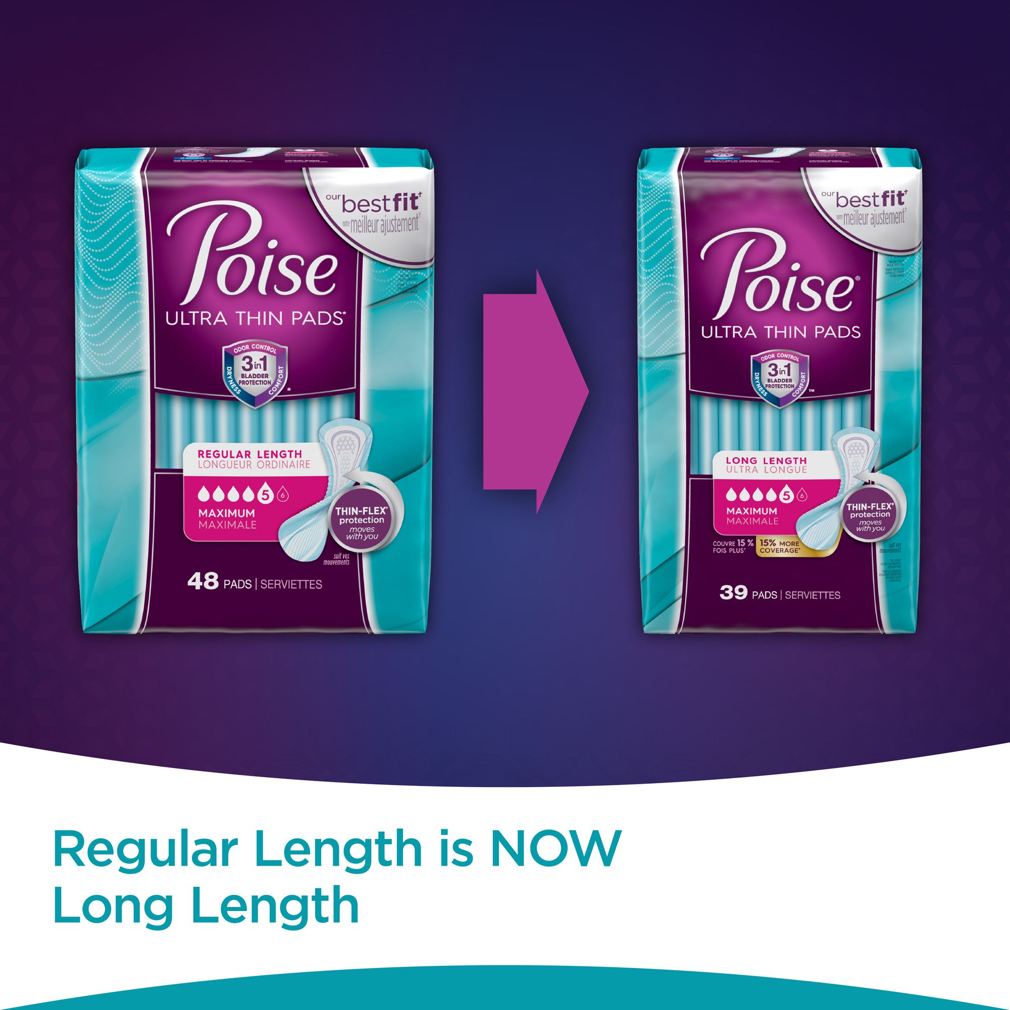 40% thinner than original Poise Maximum Absorbency Pads 3-in-1 protection for dryness, comfort and odor control and Thin-Flex technology for comfort Unscented fragrance-free pads Instantly locks away wetness and neutralizes odor 10.1" long Shipped in discreet packaging and are FSA-eligible Includes 48 pads