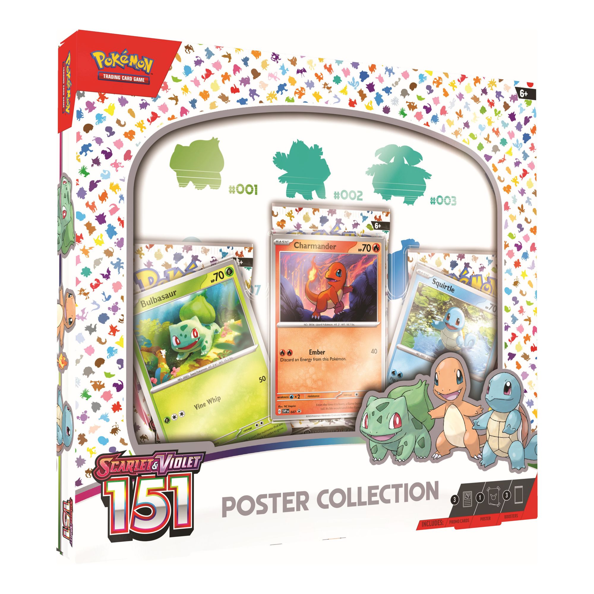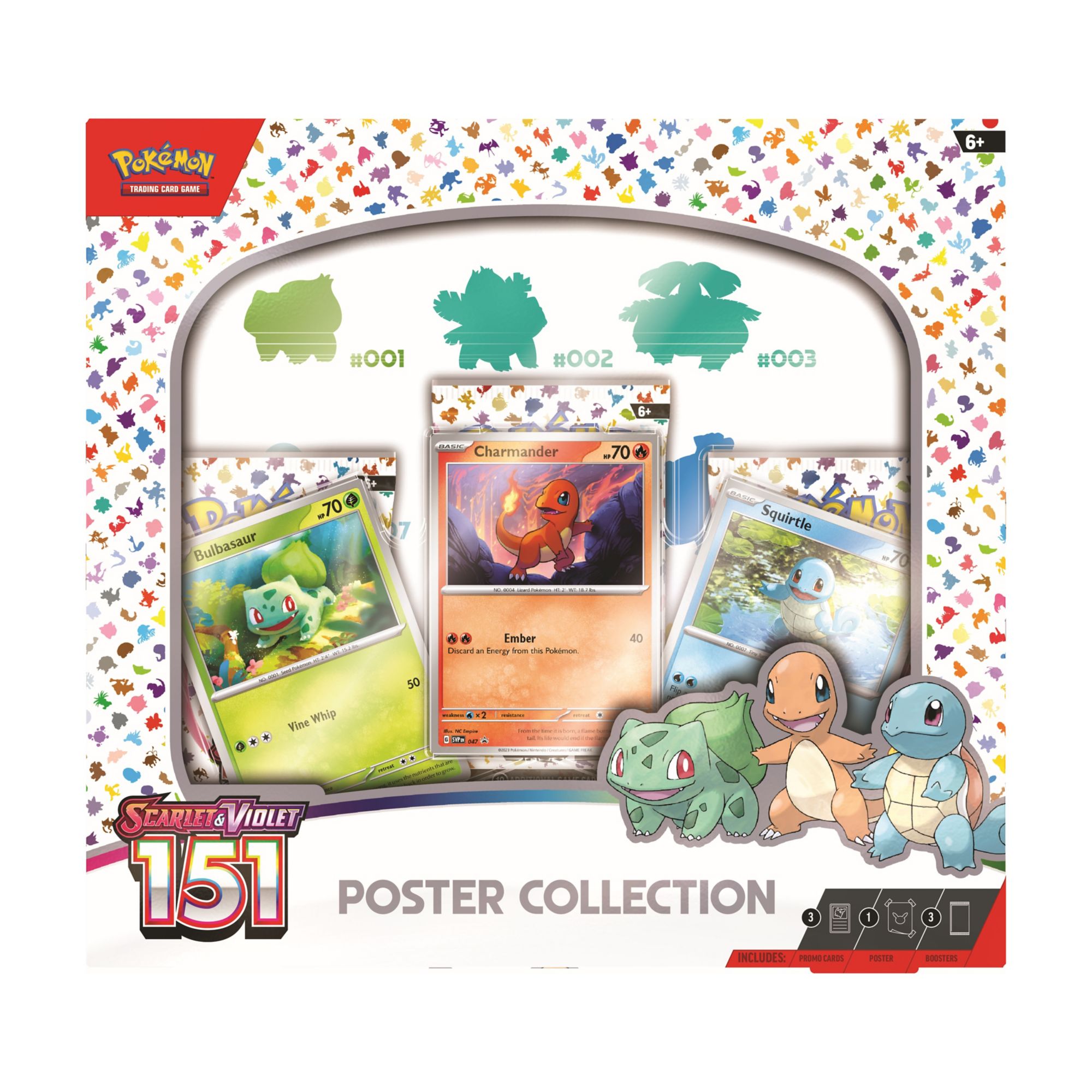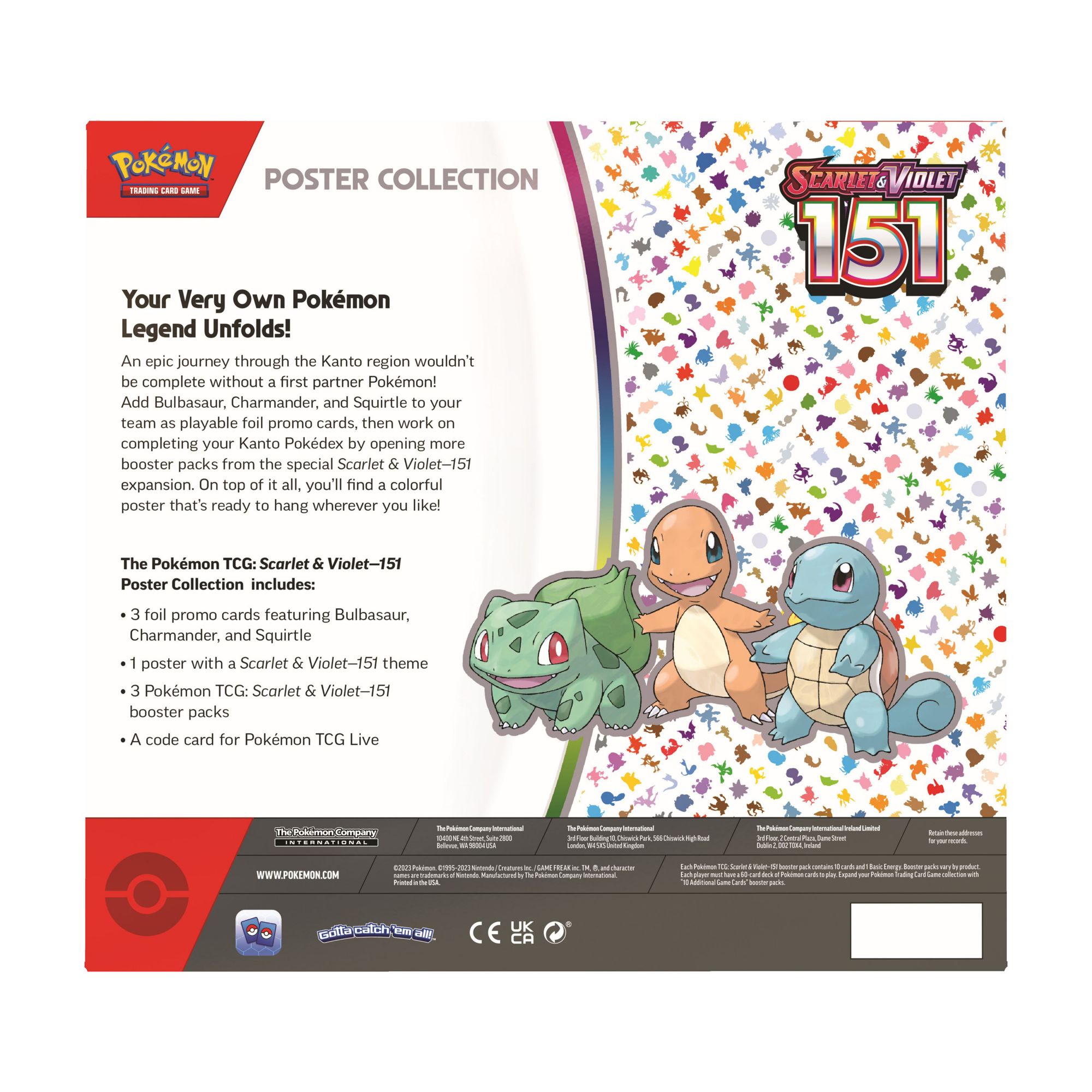 Your very own Pokémon legend unfolds. An epic journey through the Kanto region wouldn’t be complete without a first partner Pokémon. Add Bulbasaur, Charmander, and Squirtle to your team as playable foil promo cards, then work on completing your Kanto Pokédex by opening more booster packs from the special Scarlet and Violet - 151 expansion. On top of it all, you’ll find a colorful poster that’s ready to hang wherever you like.