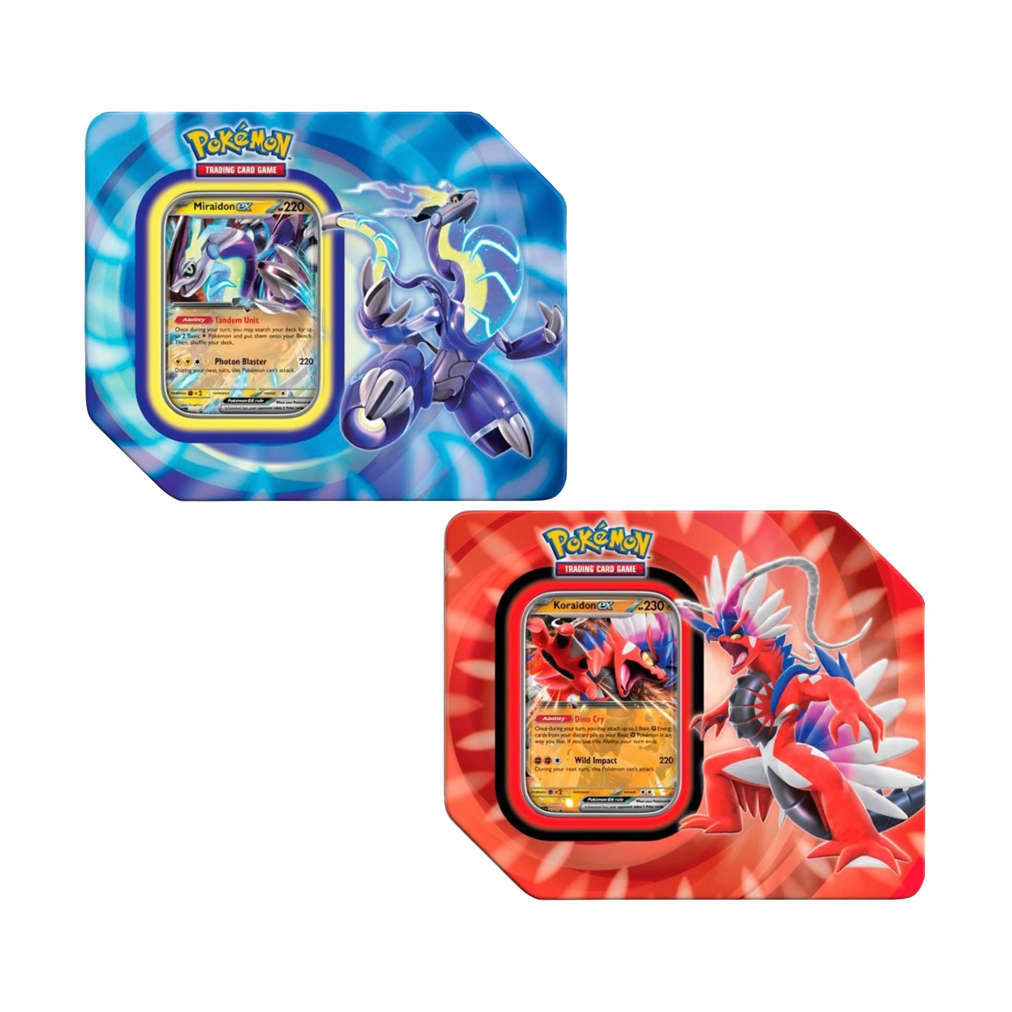 Transcend past and future with Pokémon ex. Traverse the hills, waters, and sky of the Paldea region with a Legendary Pokémon by your side. Choose the primal intensity of Koraidon ex or the polished fortitude of Miraidon ex, each boasting a useful ability and strong attack, and then build up your collection with even more Pokémon and Trainer cards inside a handful of booster packs. Collect both exclusive Paldea Legends Tins from Spring'23.