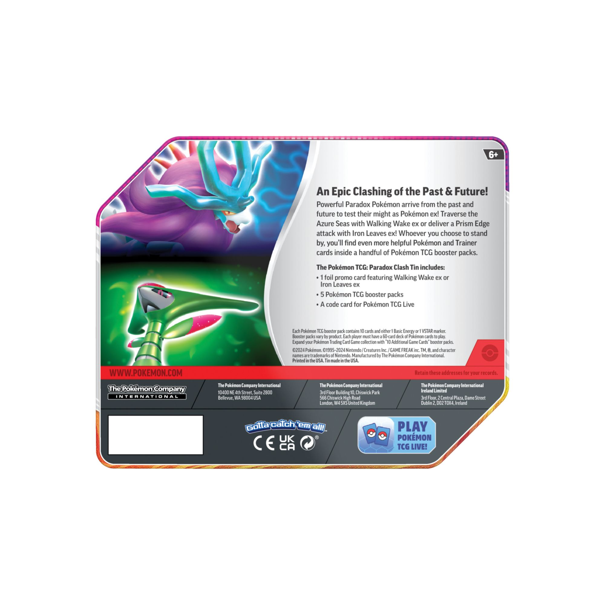 An Epic Clashing of the Past and Future. Powerful Paradox Pokémon arrive from the past and future to test their might as Pokémon ex. Traverse the Azure Seas with Walking Wake ex or deliver a Prism Edge attack with Iron Leaves ex. Whoever you choose to stand by, you’ll find even more helpful Pokémon and Trainer cards inside a handful of Pokémon TCG booster packs.