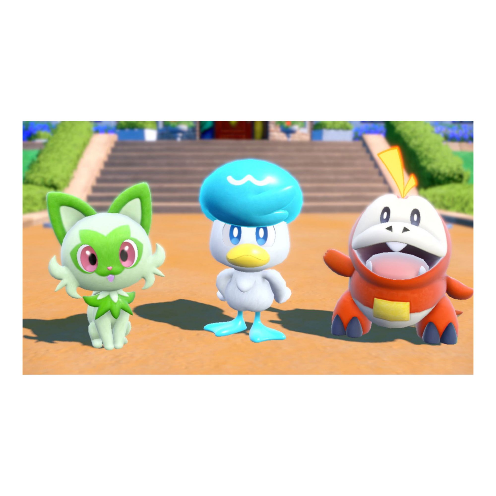 Embark on a Pokemon adventure with the Pokemon Scarlet and Pokemon Violet games, coming to the Nintendo Switch. As the main character, you can explore the wide-open world of Pokemon Violet at your own pace. In these games, you’ll be able to enjoy the iconic adventures of the Pokemon series, like battling against wild pokemon and trying to catch them! Choose either sprigatito, the grass cat pokemon, fuecoco, the fire croc pokemon, or quaxly, the duckling pokemon to be your first partner pokemon before setting off on your journey through this new region.