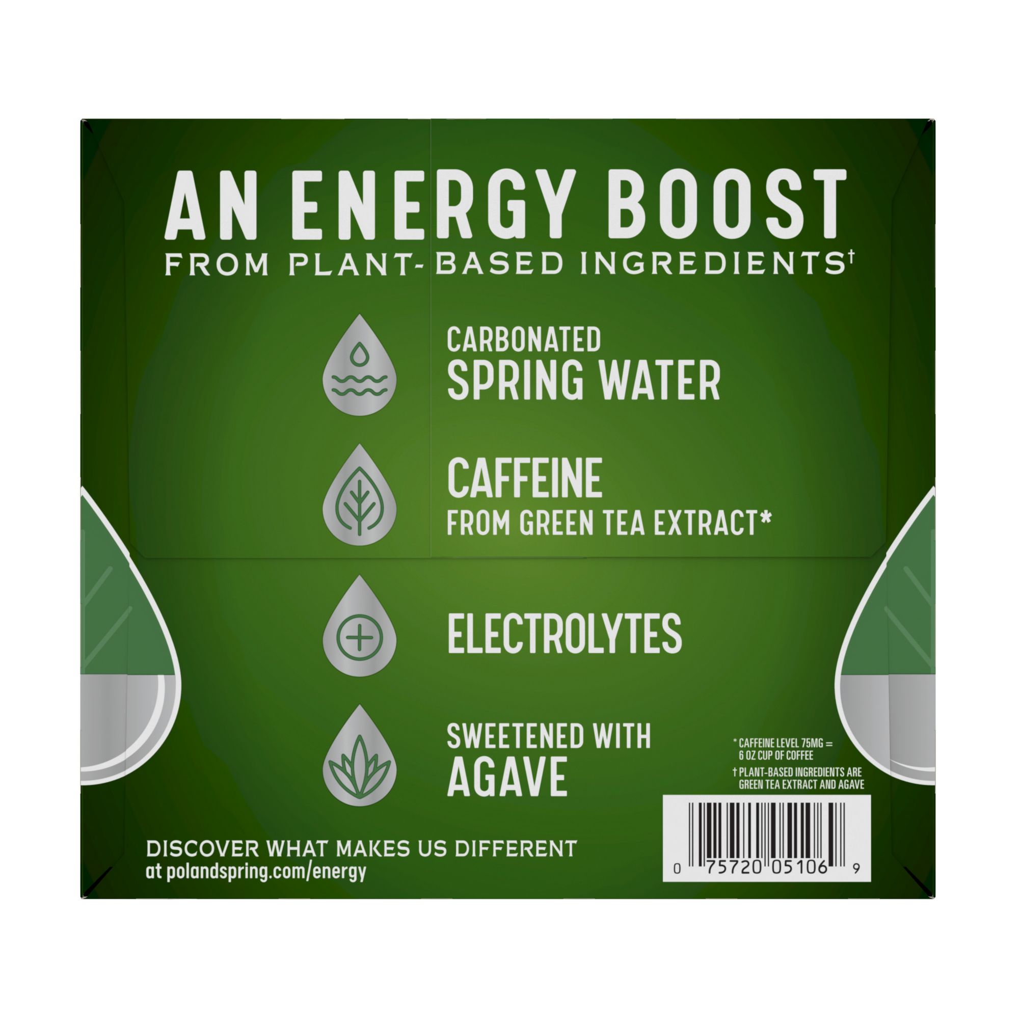 Boost your day with Poland Spring Sparkling Energy Water Beverage, a new kind of energy drink inspired by nature. Made with crisp, natural spring water from Maine, natural flavors, and 75mg caffeine from green tea extract, it‘s the low-calorie plant-based lift you can feel good about.