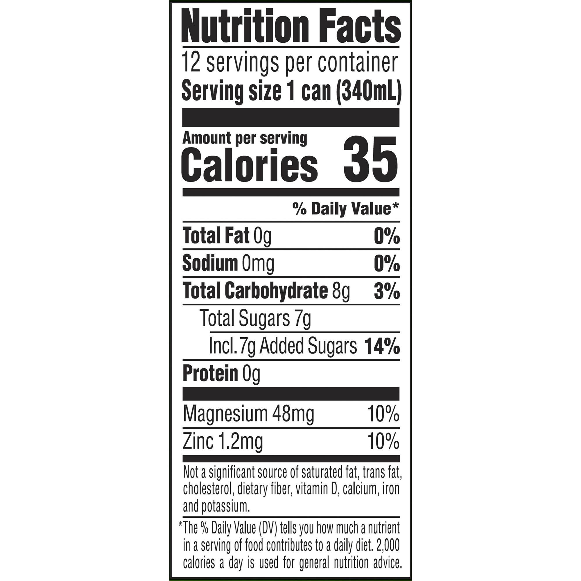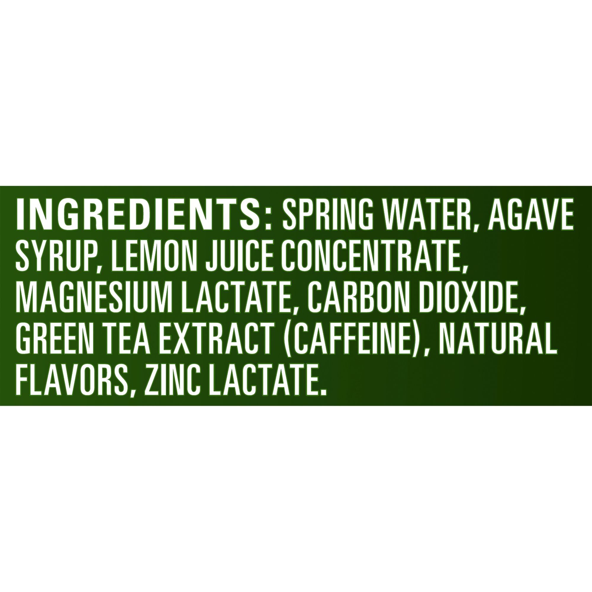 Ingredients:Spring Water, Agave Syrup, Lemon Juice Concentrate, Magnesium Lactate, Carbon Dioxide, Green Tea Extract (Caffeine), Natural Flavors, Zinc Lactate