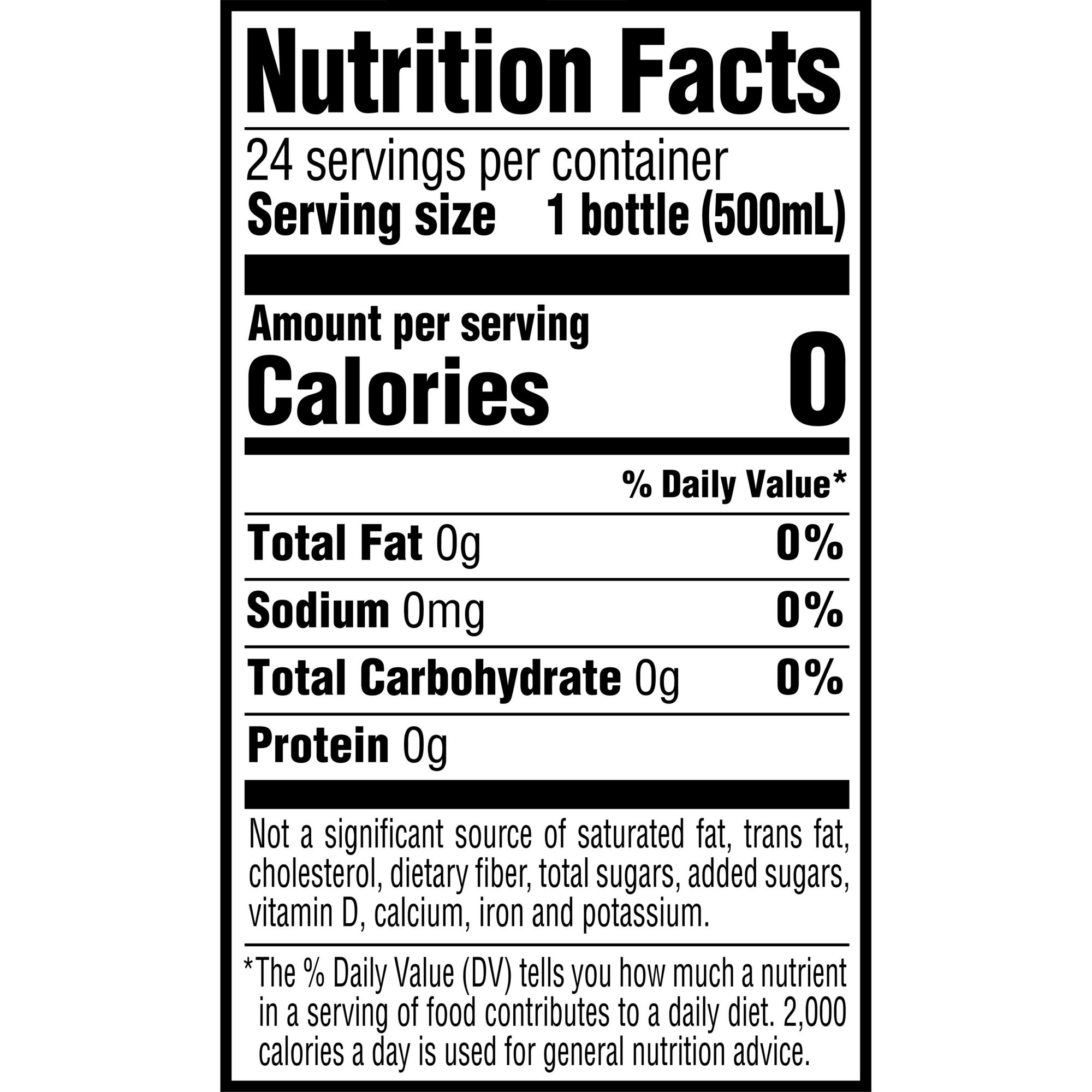 Free of calories, sugars, sweeteners, and colors