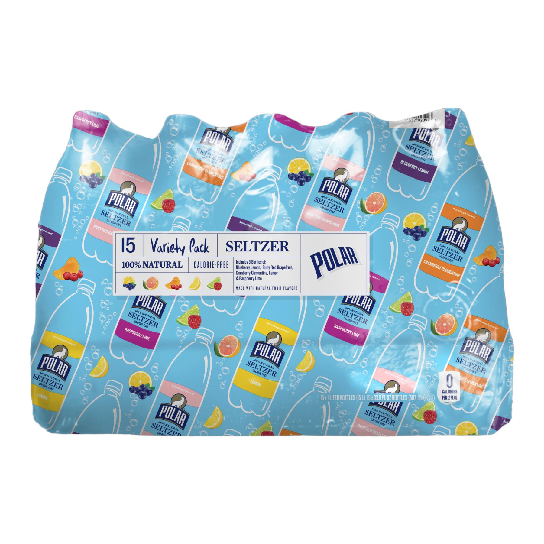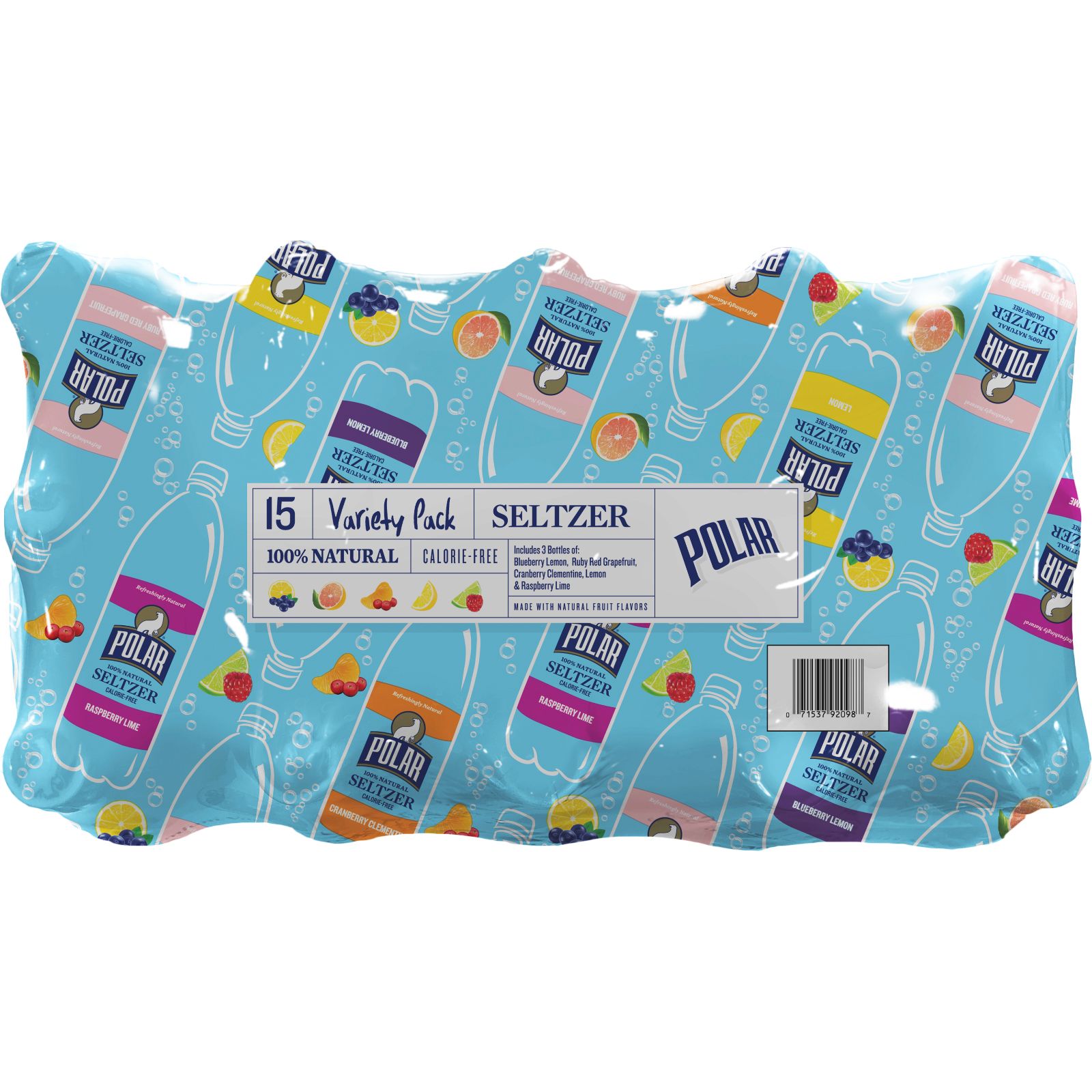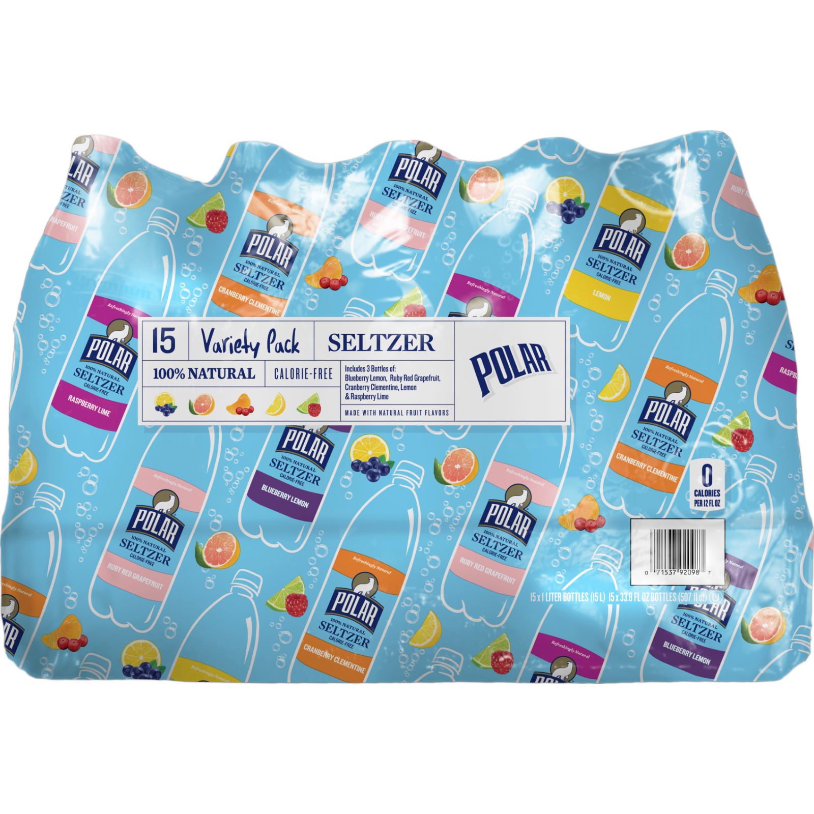 Polar Seltzer Lemon 1L Bottle (3), Polar Seltzer Raspberry Lime 1L Bottle (3), Polar Seltzer Ruby Red Grapefruit 1L Bottle (3), Polar Seltzer Blueberry Lemon 1L Bottle (3), Polar Seltzer Cranberry Clementine 1L Bottle (3)
