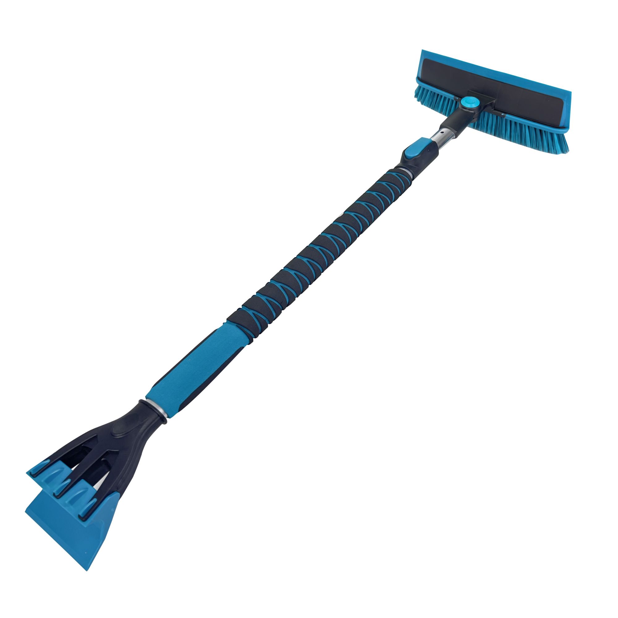 This all-in-one snowbrush and ice scraper set is designed for convenient and efficient snow removal. The extra-wide broom head features soft-touch outer bristles and tough inner bristles allowing you to clear heavy snow while protecting your vehicle's exterior. A built-in squeegee quickly wipes away slush and moisture, giving you a crystal-clear view every time. The 60" reach gives you extra leverage when needed and compacts for easy storage when you are done. The full sleeve grip offers a comfortable slip-free hold while the dual action ice scraper features a wide blade that easily removes stubborn ice. As a bonus, this set includes an XL dual-action ice scraper perfect for on-the-go tasks or to keep in a second vehicle.