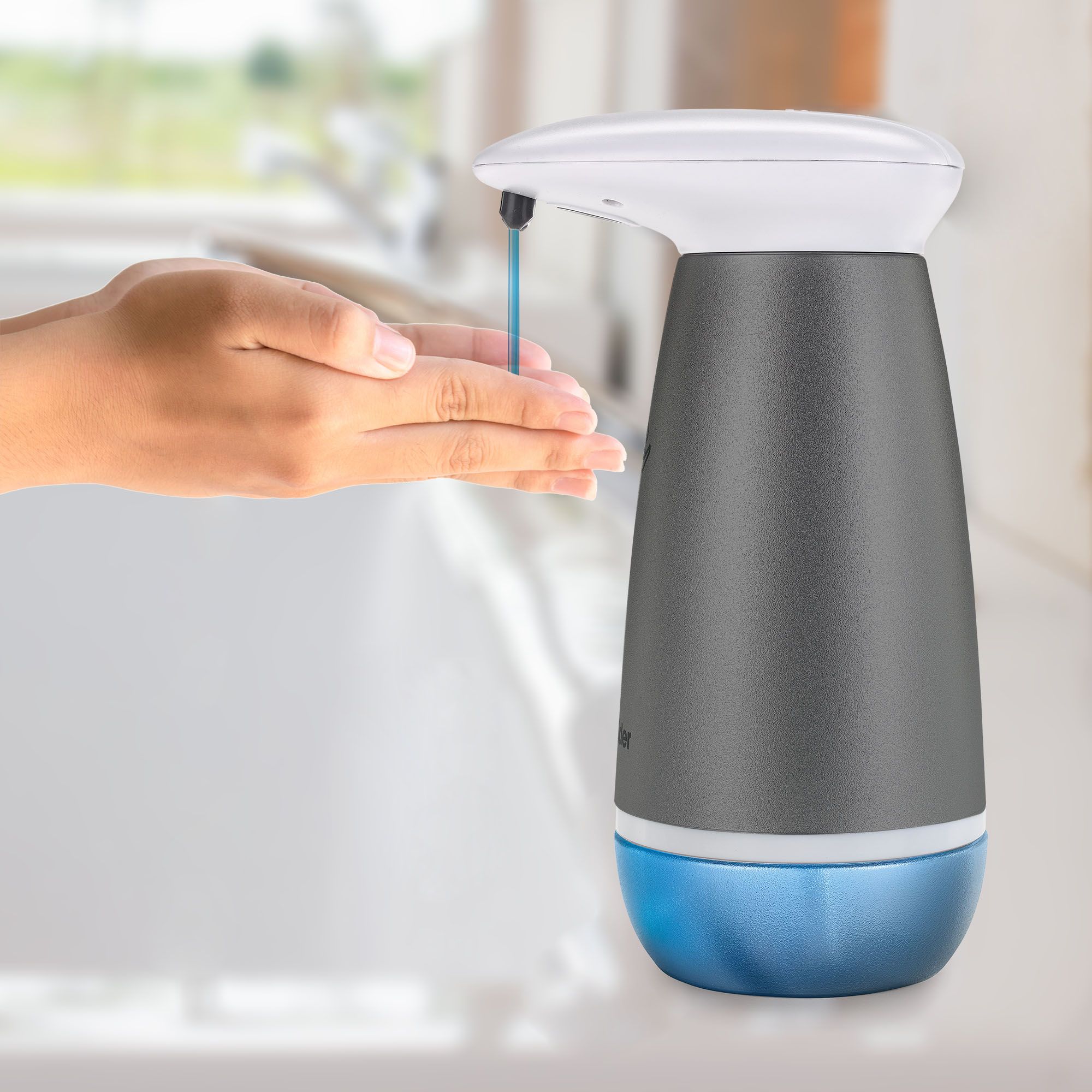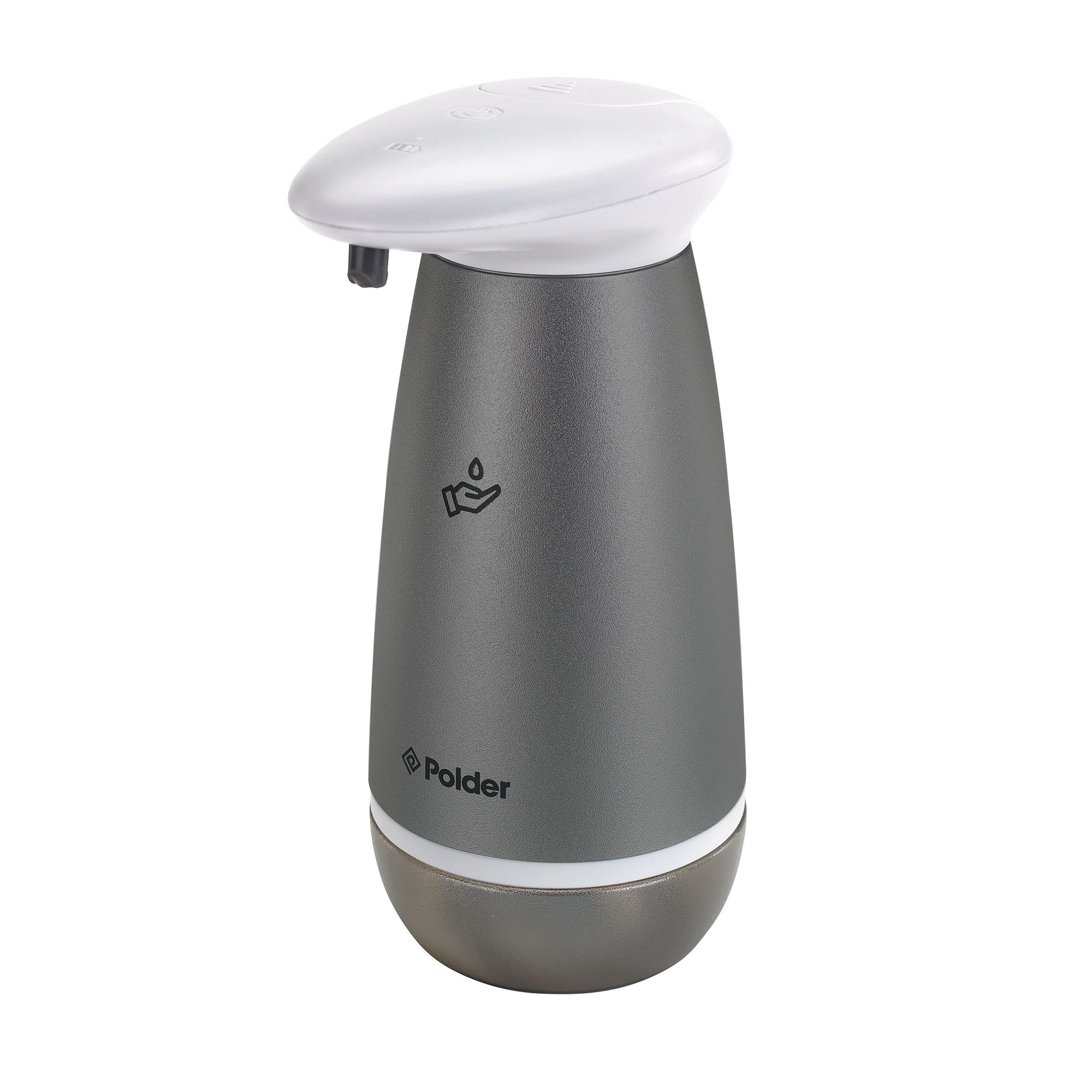 Polder's No-Touch Sensor Soap Pump features a 300mL (10 oz.) capacity that automatically dispenses liquid soap. Simply place hand under spout and soap dispenses for no-touch operation. Power on/off button and LED light shows battery life. Translucent base allows easy visibility to know when contents need to be replenished. Hands-free use allows for a more hygienic handwashing experience. Perfect for use at the kitchen sink or in the bathroom. The No-Touch Sensor Soap Pump is designed to dispense liquid soap only and comes with four AAA batteries included.