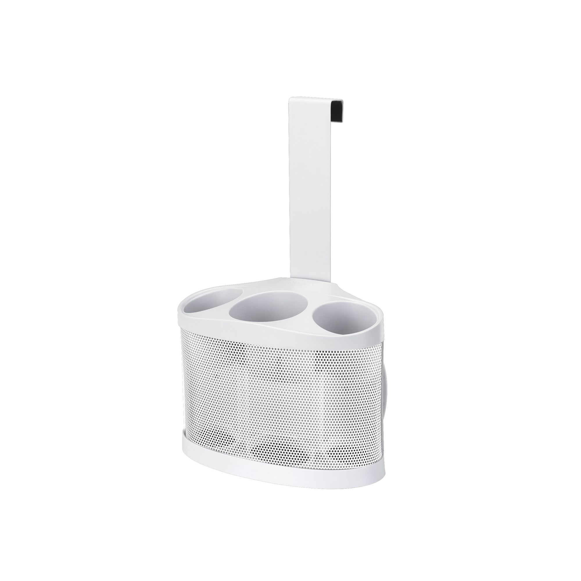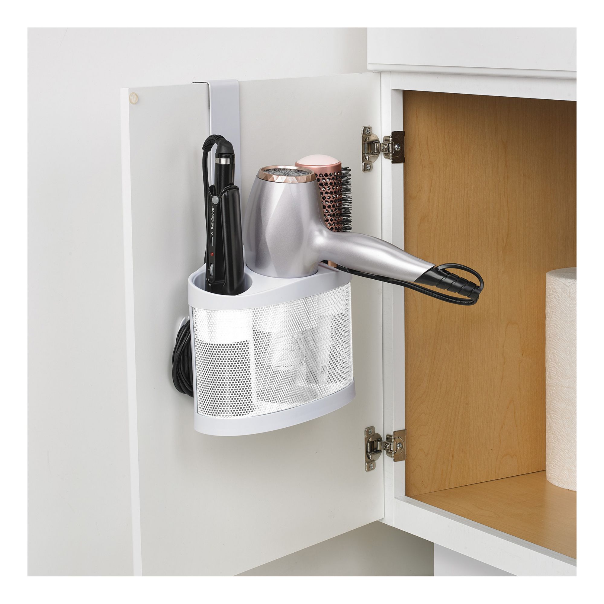 Polder’s Over-the Door Style Station PRO is the versatile solution for keeping hair styling tools - hot or cold - neat, safe, and clutter-free. Conveniently hang inside cabinet door with the removable over-the-door hook. Three separate oversized storage compartments are perfect for storing blow dryers, curling irons, flat irons, brushes, combs, or other styling implements. Hot tools cool down safely with heat-resistant mesh and increased airflow. Durable stainless steel and plastic construction includes a silicone inner base for the safe storage of tools as they cool. A removable hook easily slips into place for convenient over-the-door storage. Dual cord storage wraps keep cords neat and out of the way. Versatile design offers storage how you need it. The unit stands securely on counters, sits inside cabinets or deep drawers, or use the removable hook to hang inside cabinet doors to free up floor space. Optional wall mount assembly (hardware not included) for alternate use.