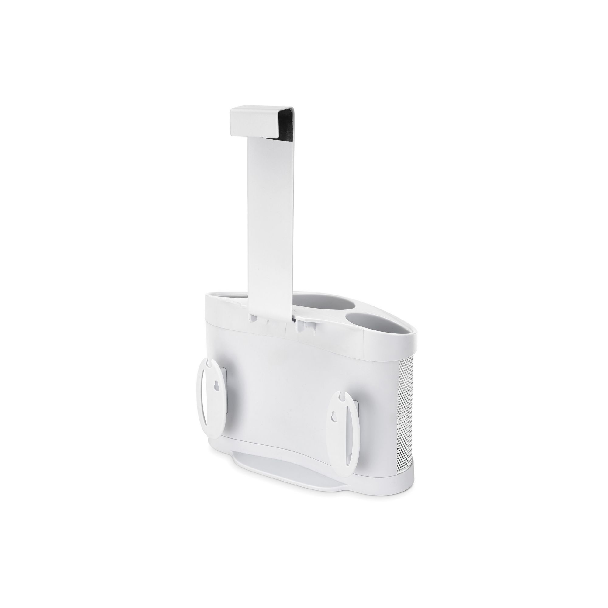 Versatile design works as a freestanding storage solution on the counter, also hangs on vanity doors, hooks on towel rod or can stand in deep drawers and under sink cabinets