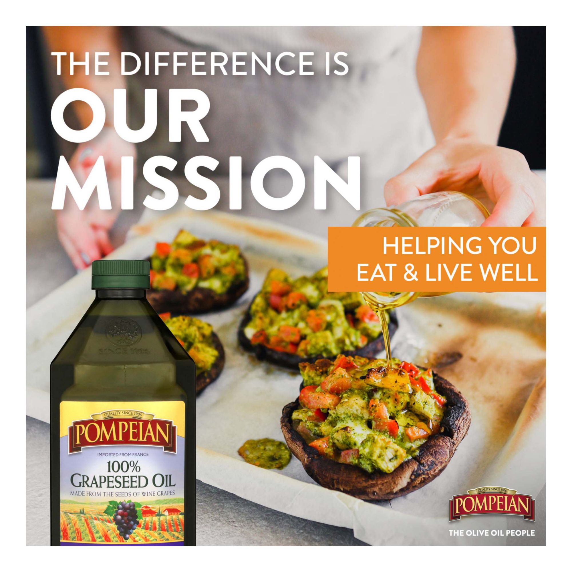 Made from the seeds of grapes imported from France, Pompeian 100% Grapeseed Oil is known for its high smoke point and delicate taste. Rich in Vitamin E, essential fatty acids, and Omega-6, the light, subtly taste will never disrupt the flavor of your favorite dishes. Pompeian 100% Grapeseed Oil is perfect for deep frying and baking.