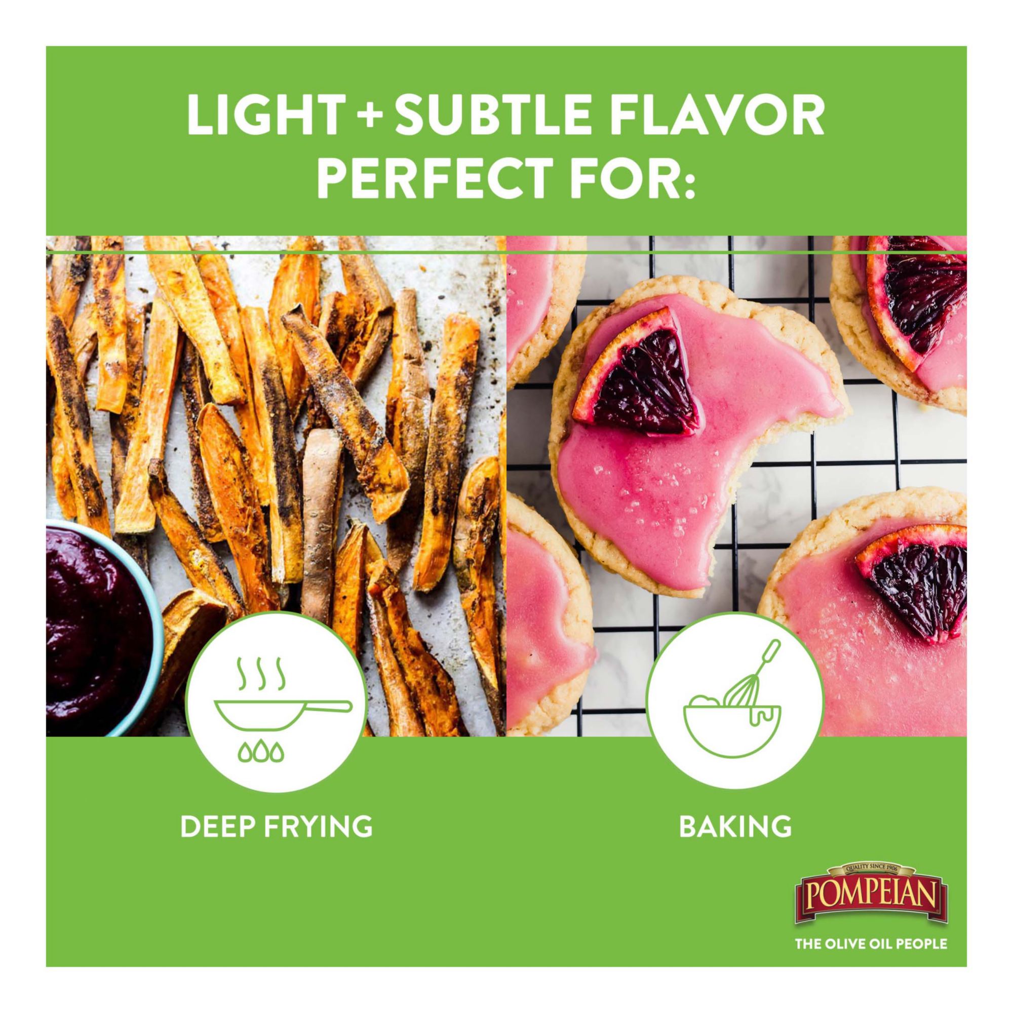 Light and Subtle Flavor: Pompeian's 100% Grapeseed Oil is a light, all-natural cooking oil with a high smoke point, perfect for stir-frying, deep frying and baking