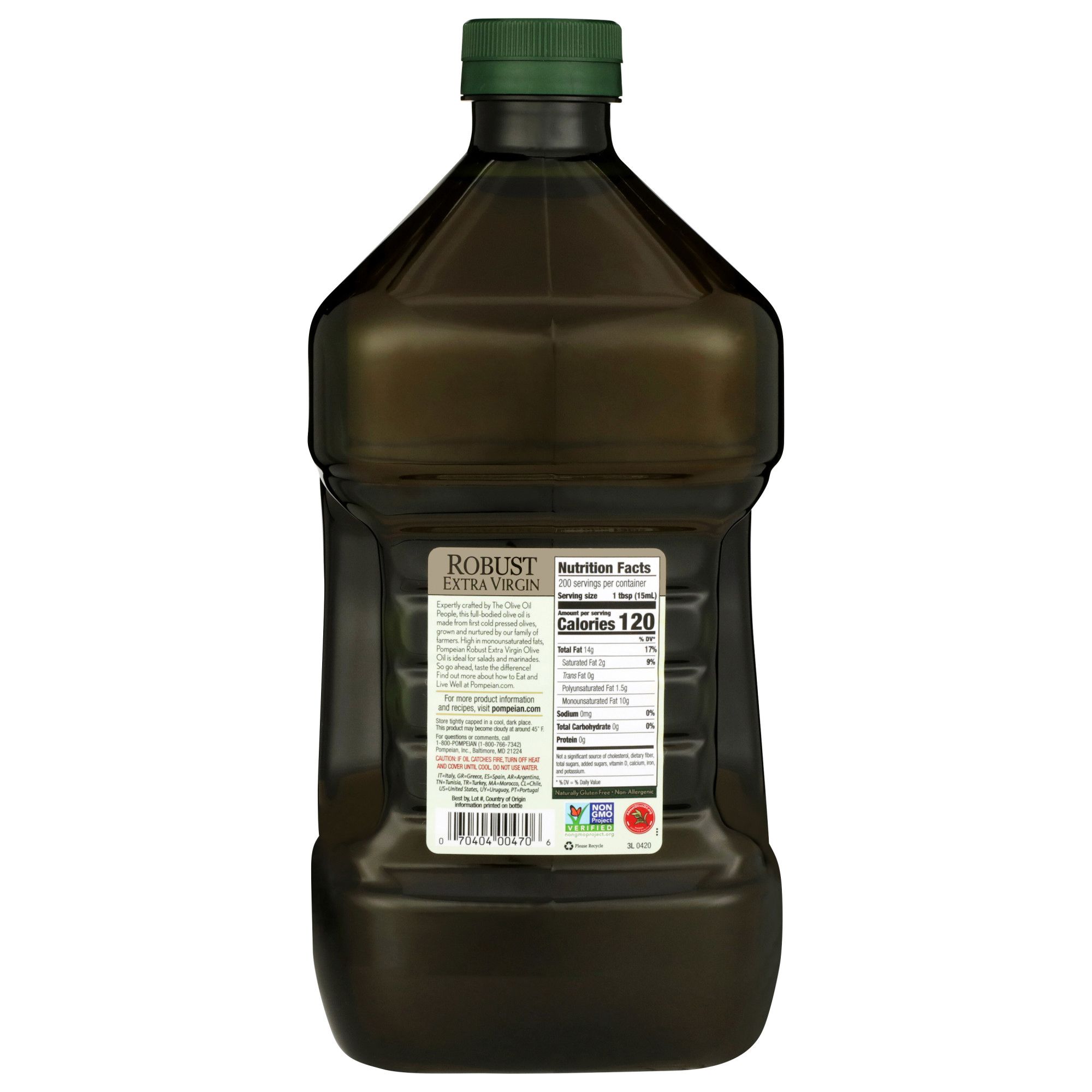 Committed to quality: Pompeian robust extra virgin olive oil is naturally gluten-free and non-allergenic, kosher, and non-GMO verified by the non-GMO project