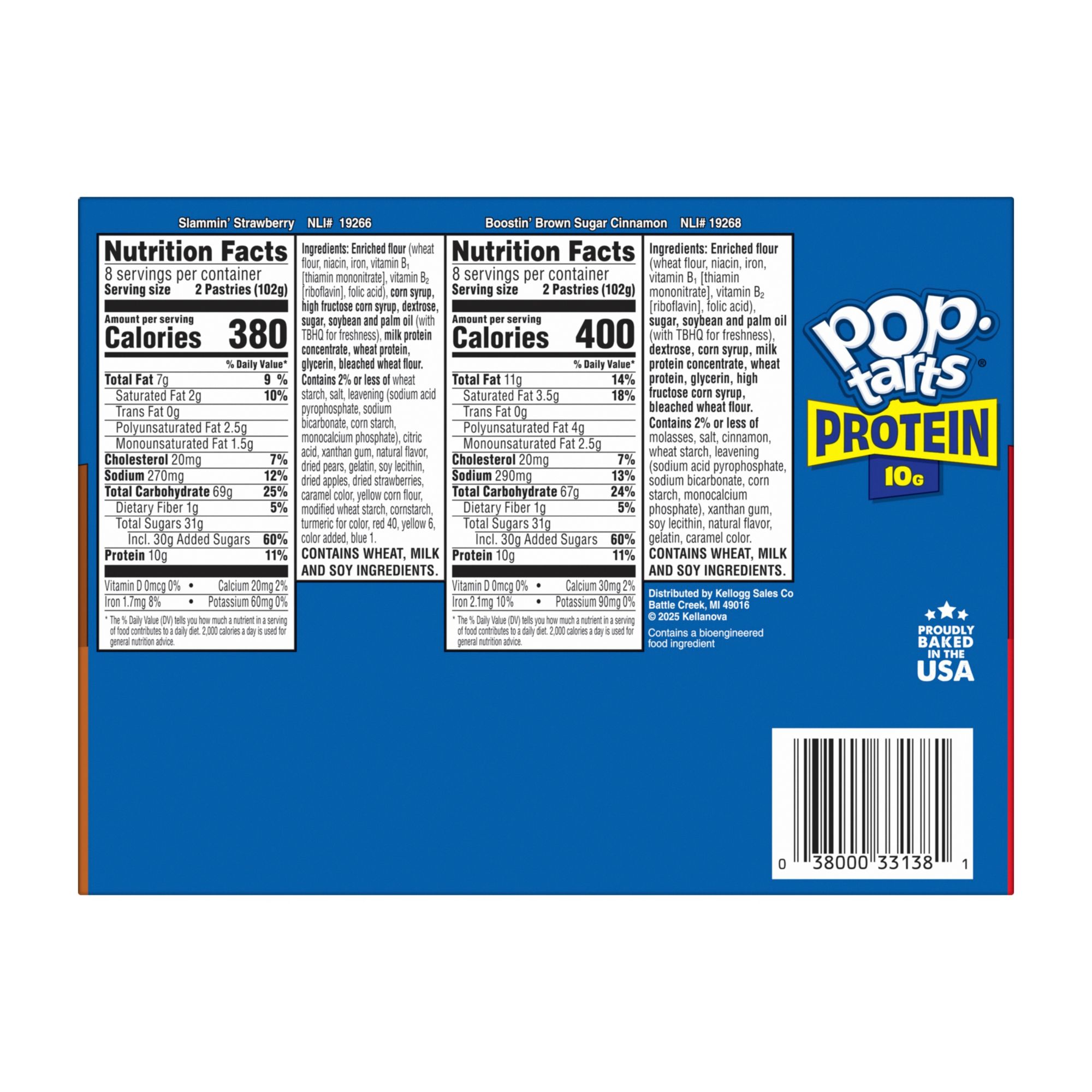 Start your day with classic Pop-Tarts flavor and 10g protein (11% daily value); Includes Slammin' Strawberry and Boostin' Brown Sugar Cinnamon flavors