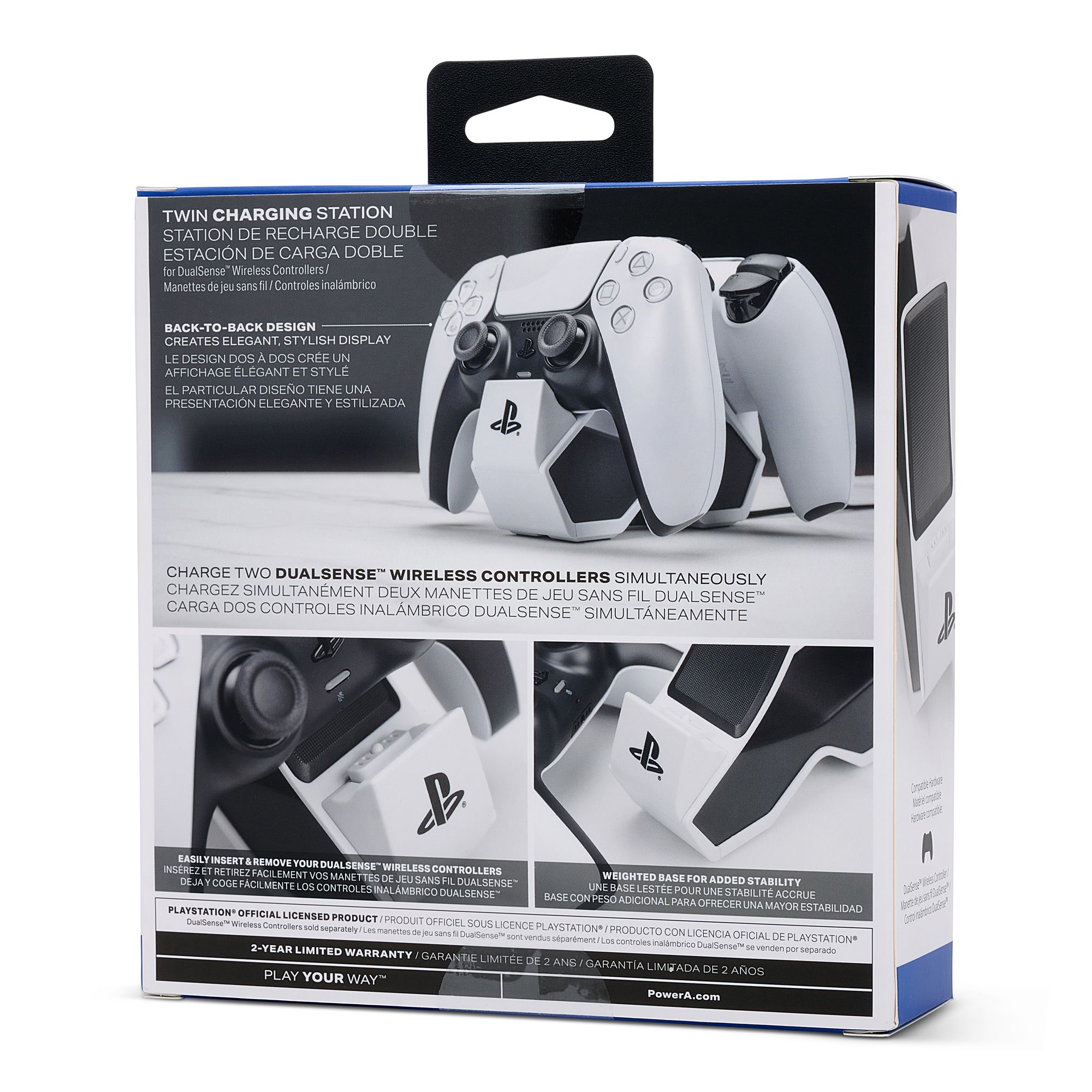 Charge and display your DualSense wireless controllers with the officially licensed twin charging station for PlayStation 5. Charging two controllers at once is simple–just place your DualSense controllers on either side of the station. Once fully charged, click down to release contact and get your game on–or just leave your controllers on the station for an awesome eye-catching display. Feel confident your controllers are always ready to game as they charge on-display alongside your PS5 console.