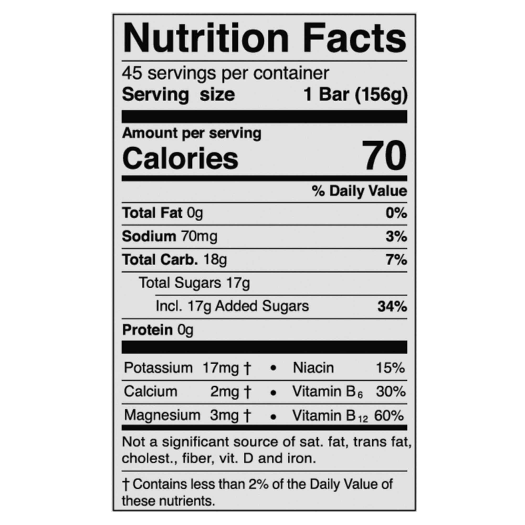 Contains four electrolytes< No artificial flavors Formulated with B-vitamins Gluten free Kosher Includes 45-count of 5.5-oz. Powerade Sports Freezer Bars