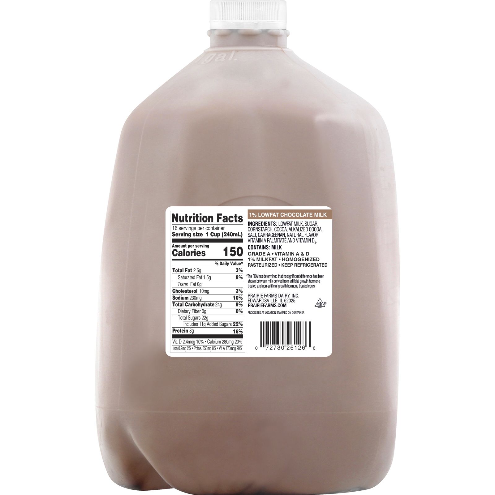 Enjoy Prairie Farm's rich and creamy 1% Lowfat Chocolate Milk. Full of protein and Vitamins A& D, Prairie Farm's 1% Lowfat Chocolate milk is an ideal addition to your breakfast, afternoon snack or post workout recovery. This great tasting chocolate milk is available in a gallon, great for the whole family.