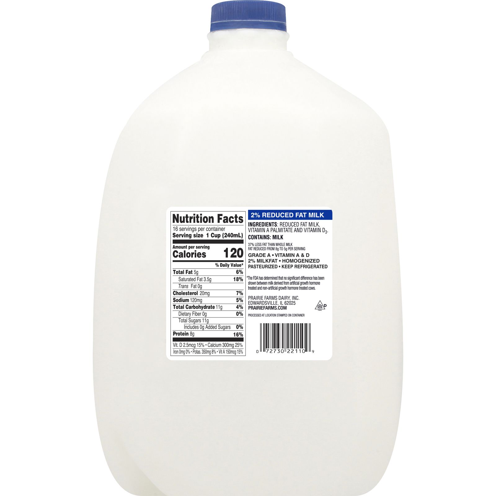 Enjoy Prairie Farms 2% Reduced Fat Milk. Packed with protein and nutrients, this milk will get you through your day. Nothing added, just pasteurized, Homogenized Grade A Vitamin A and D 2% Reduced Fat milk. This great tasting milk is available in a gallon, great for the whole family.
