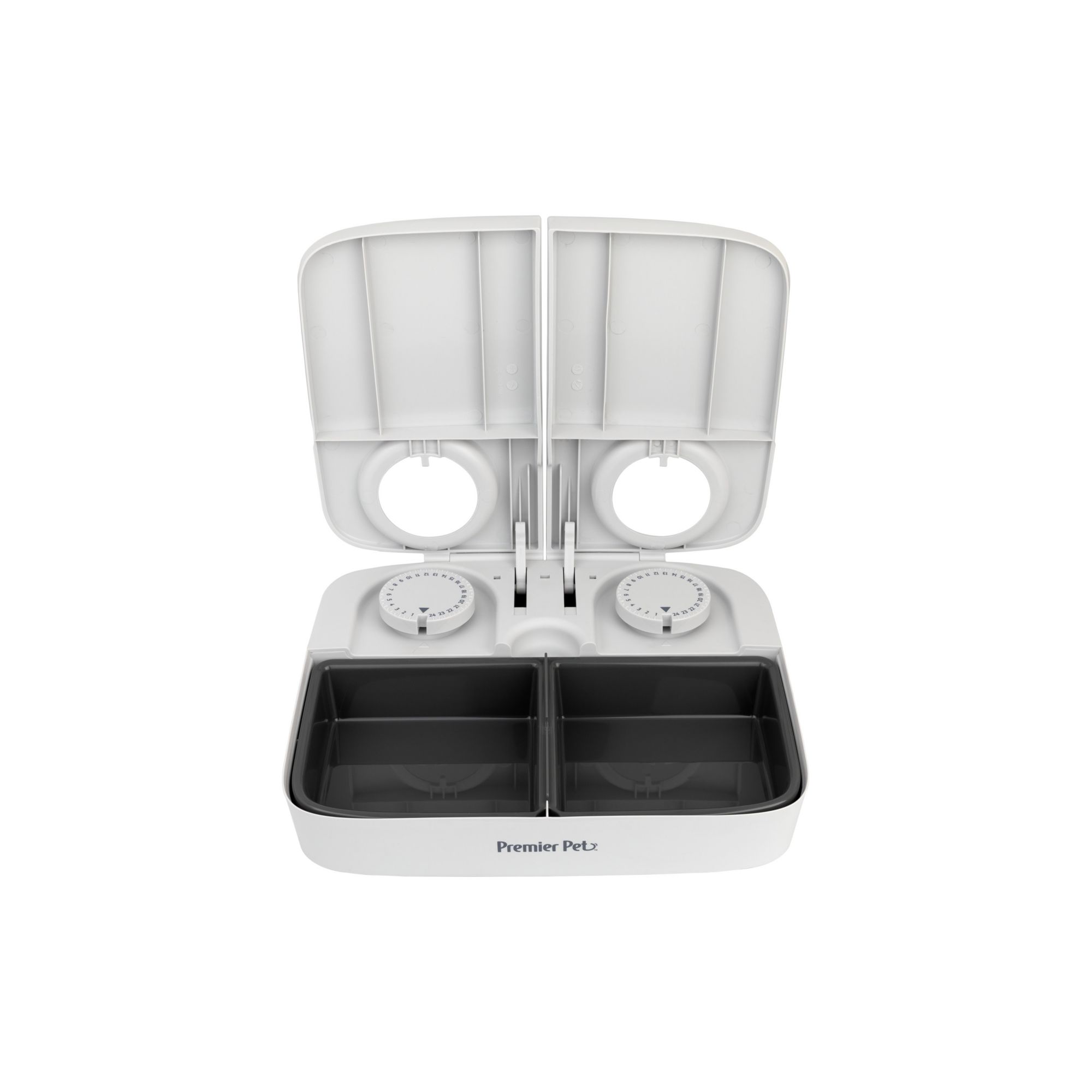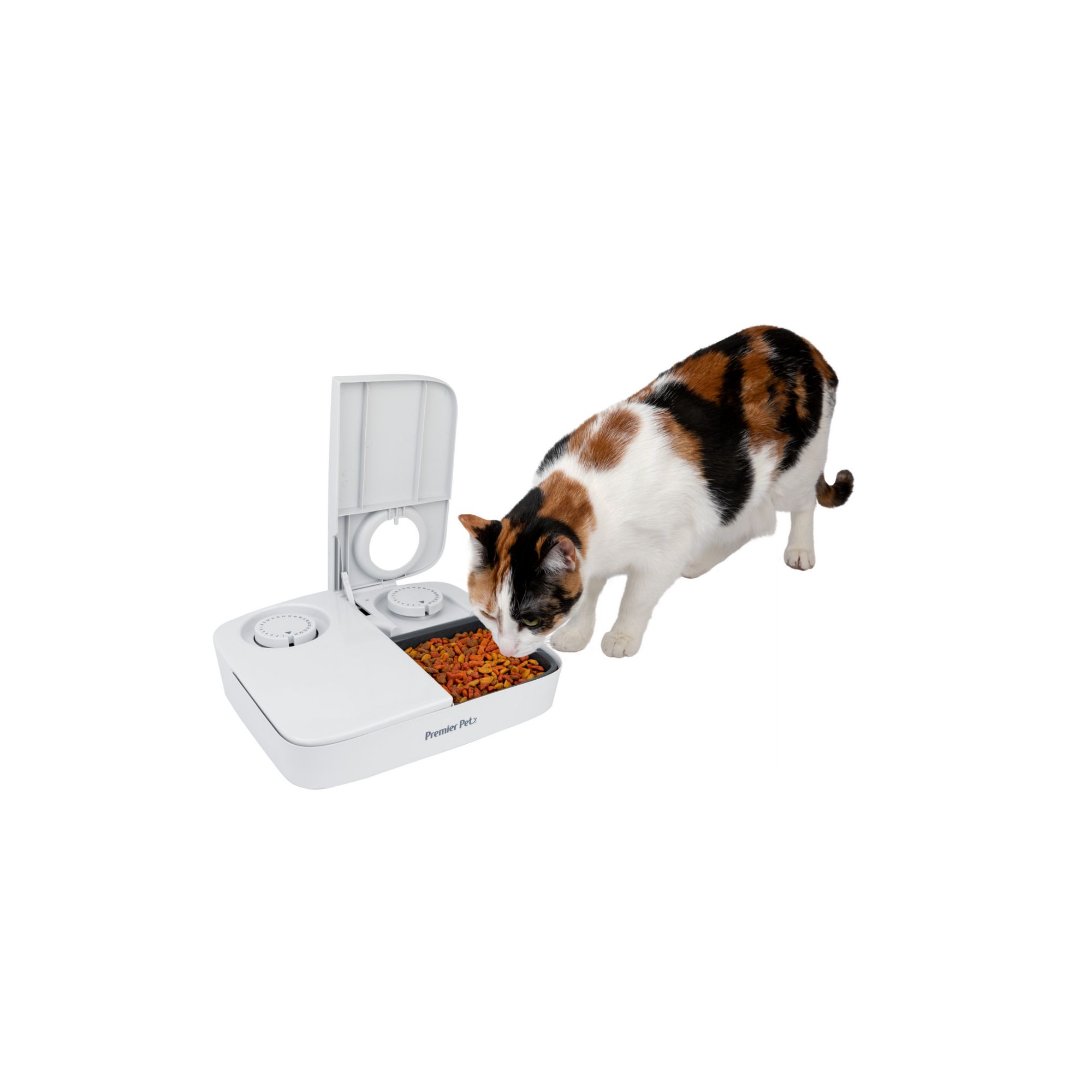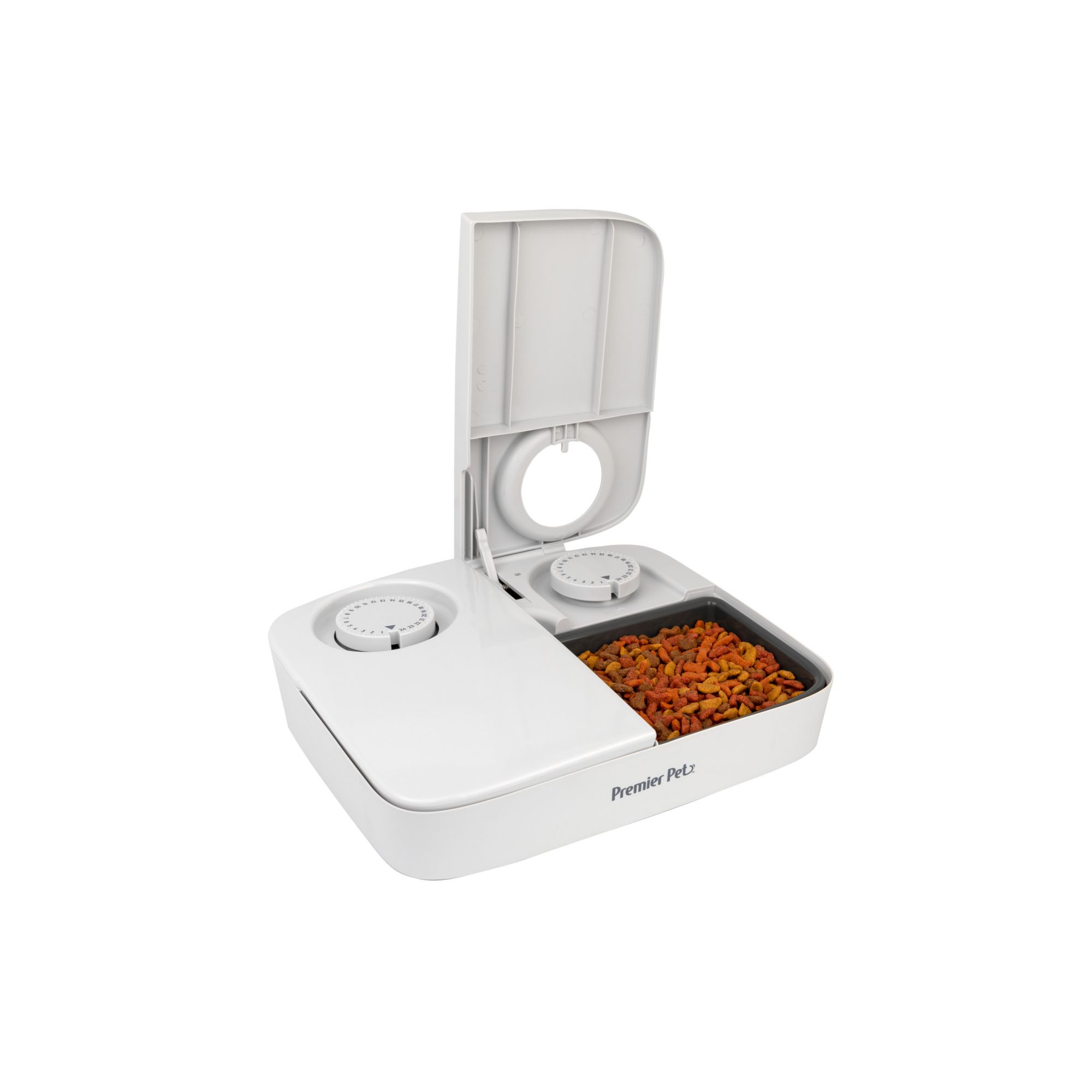 The Premier Pet Automatic Timer Pet Feeder - 2 Meals provides a convenient and healthy solution to feed your pet two pre-portioned meals within a 24-hour period. You have the option of feeding with dry or semi-moist food and up to one and a half cup per meal. The simple-to-use timer design helps control your pet's weight and establish a healthy eating routine when you're busy or away from home.