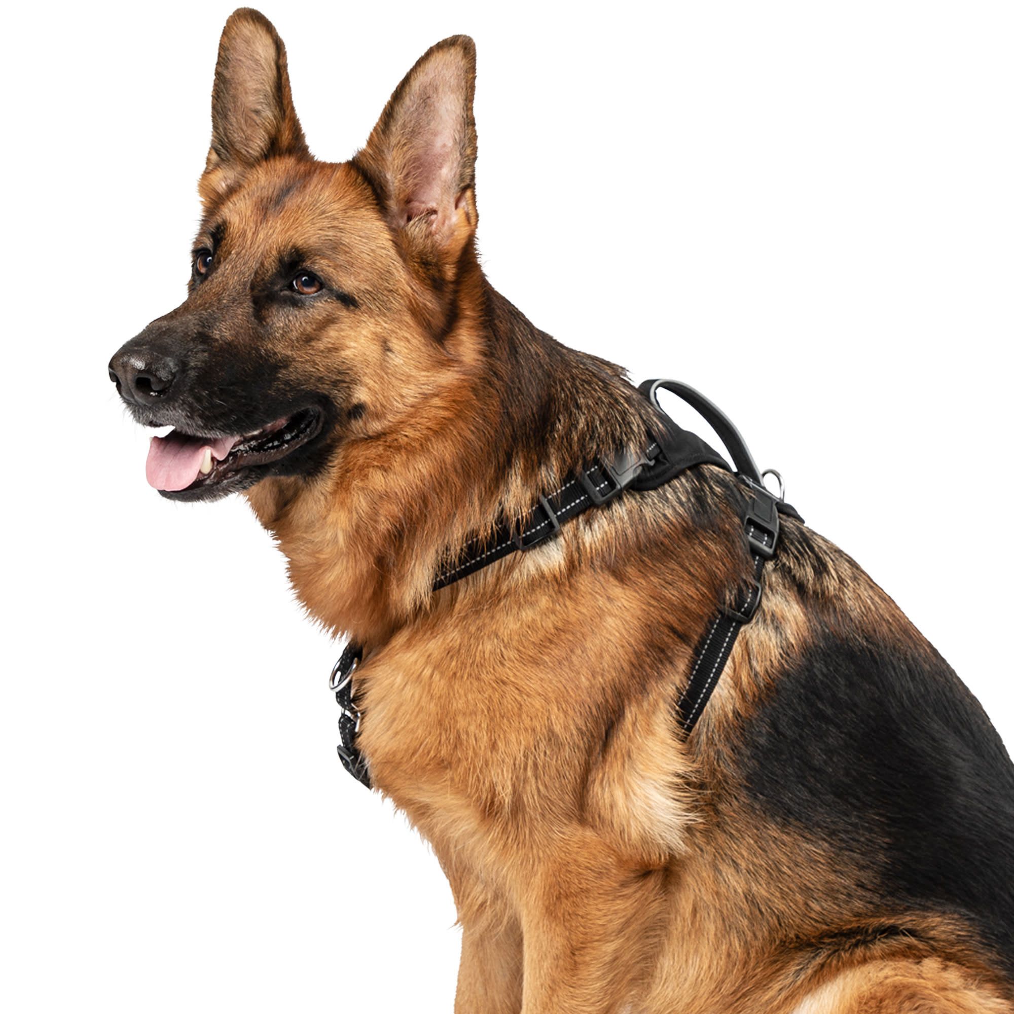 The Premier Pet No Pull Comfort Harness keeps your dog safe and comfortable during all your walking adventures. Choose the best size for your dog by measuring the widest part of his/her rib cage and easily create a custom fit with the four adjustment points. With two leash attachment points, you have a variety of walking options including a standard harness (clip in the back), a no-pull harness (clip in the front), and a control harness (both clips) when used with the Premier Pet Multi-Functional Leash. Built with reflective stitching, this harness provides safety, comfort, and control during any outing with your dog.