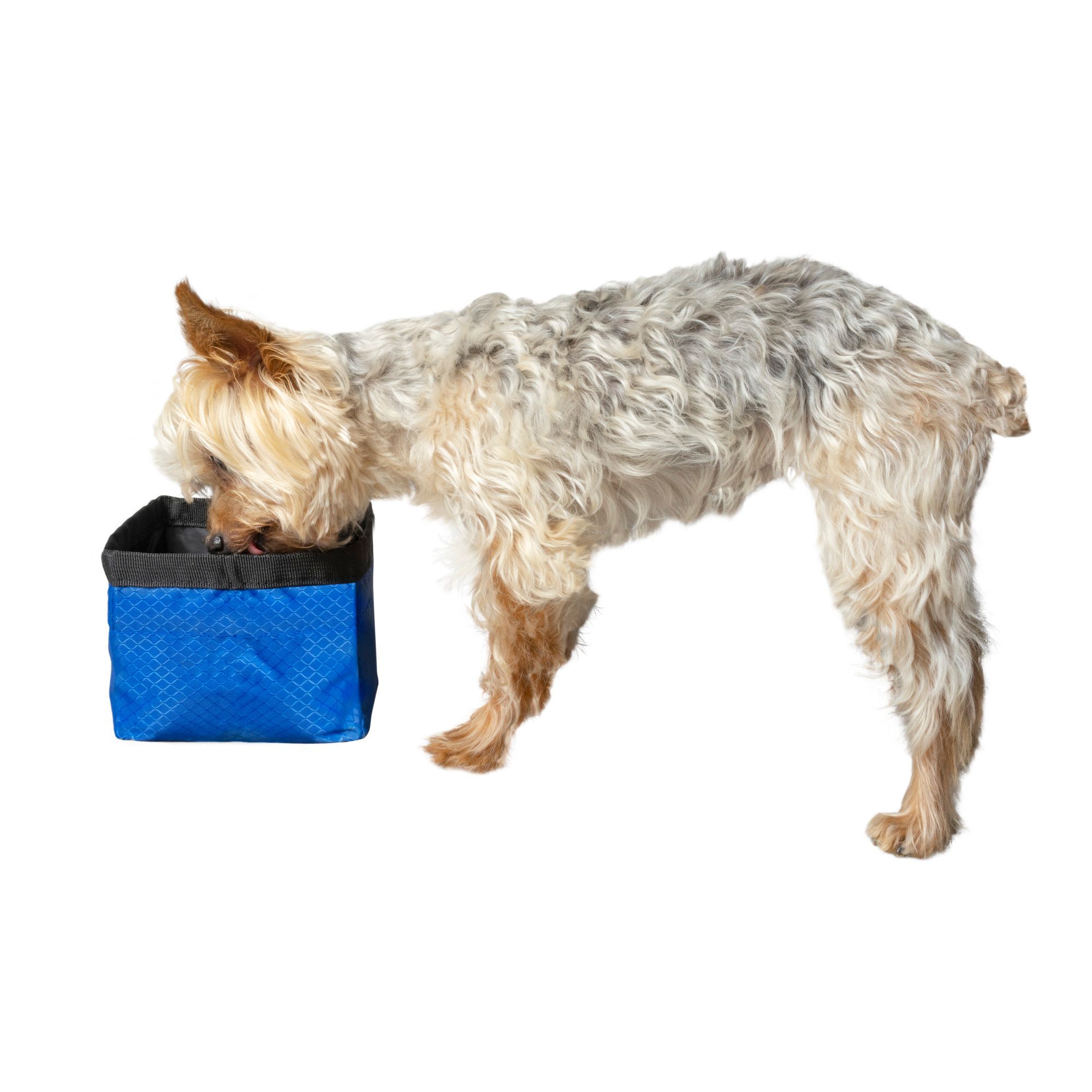 Holds up to 50 oz. of food or water (eight cups) Durable material is leak-proof and dries quickly Folds down for easy storage during travel Made with durable material Includes travel bowl