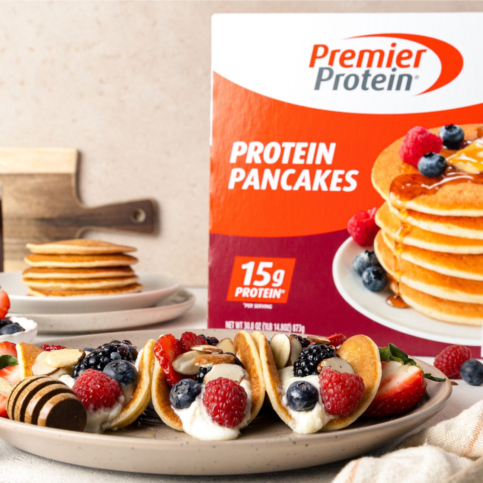 Kickstart your day with Premier Protein Frozen Pancakes, complete with 15 grams of protein per serving to keep you full and focused. Pop your pancakes in the microwave for 60 seconds to bring out the soft edges and fluffy insides, just like they’re hot off the griddle. Then, top your pancakes however you like. Pancakes aren’t only for syrup, try them with peanut butter, hazelnut spread, fruit or Greek yogurt for a special snack anytime of the day. Premier Protein is on a mission to inspire optimism on the journey to becoming a happier and healthier you.