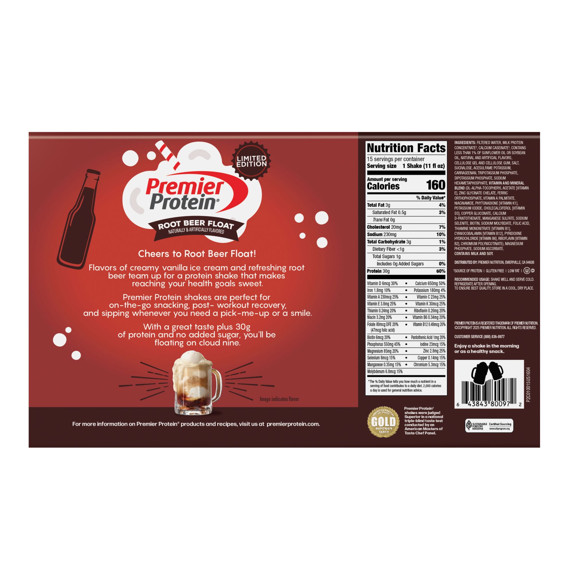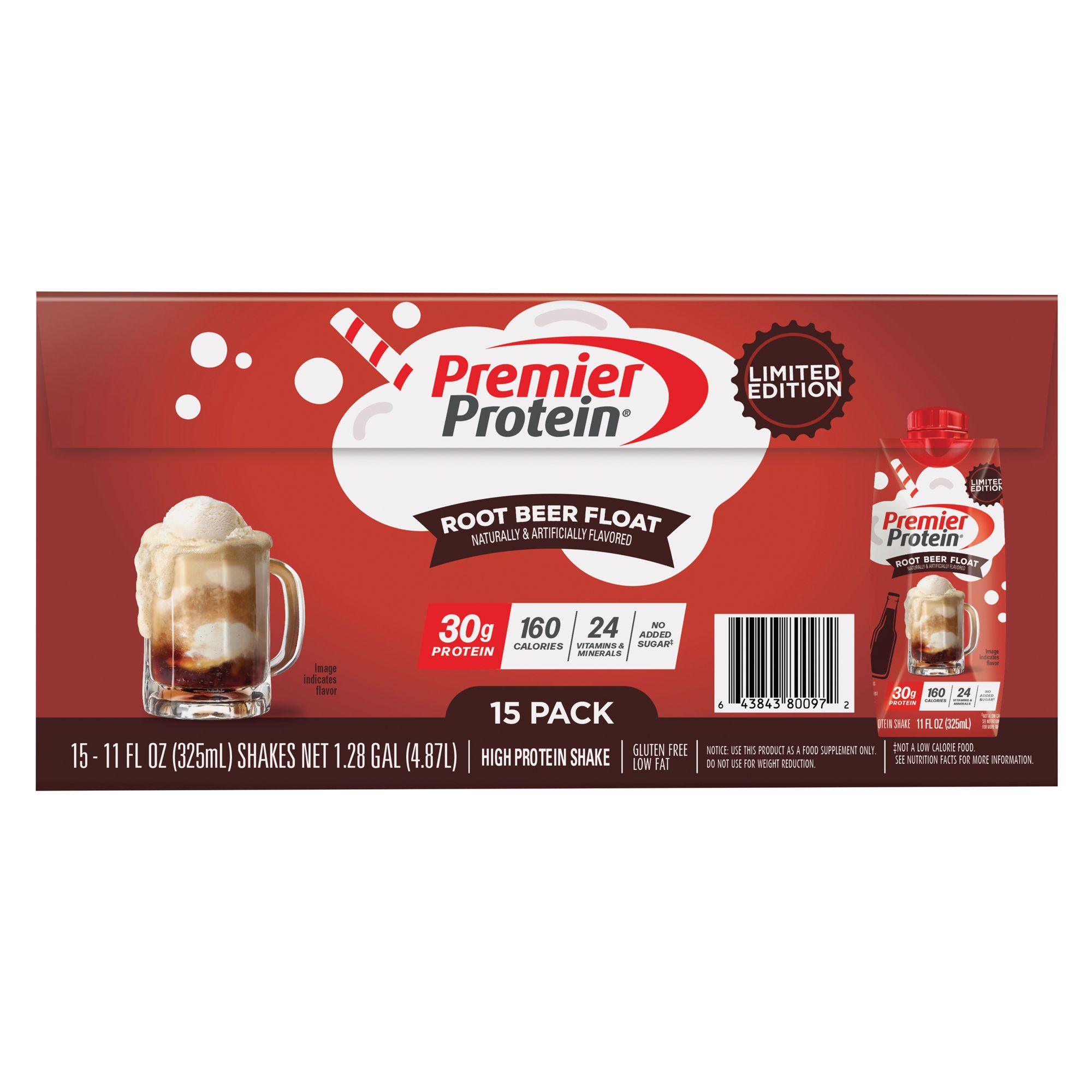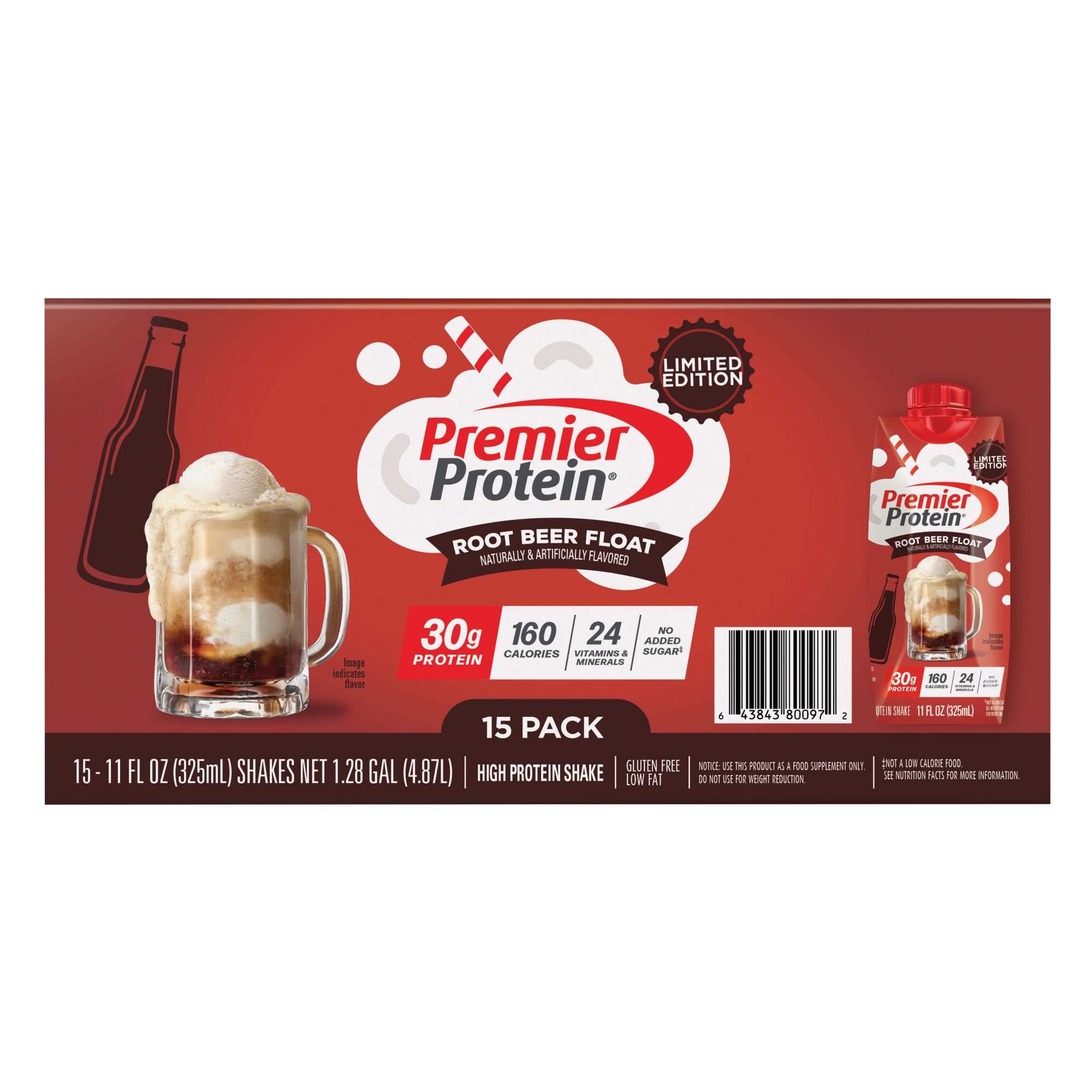 Premier Protein Root Beer, 30g Protein, Ready To Drink Protein Shake, 15 ct./11 oz.