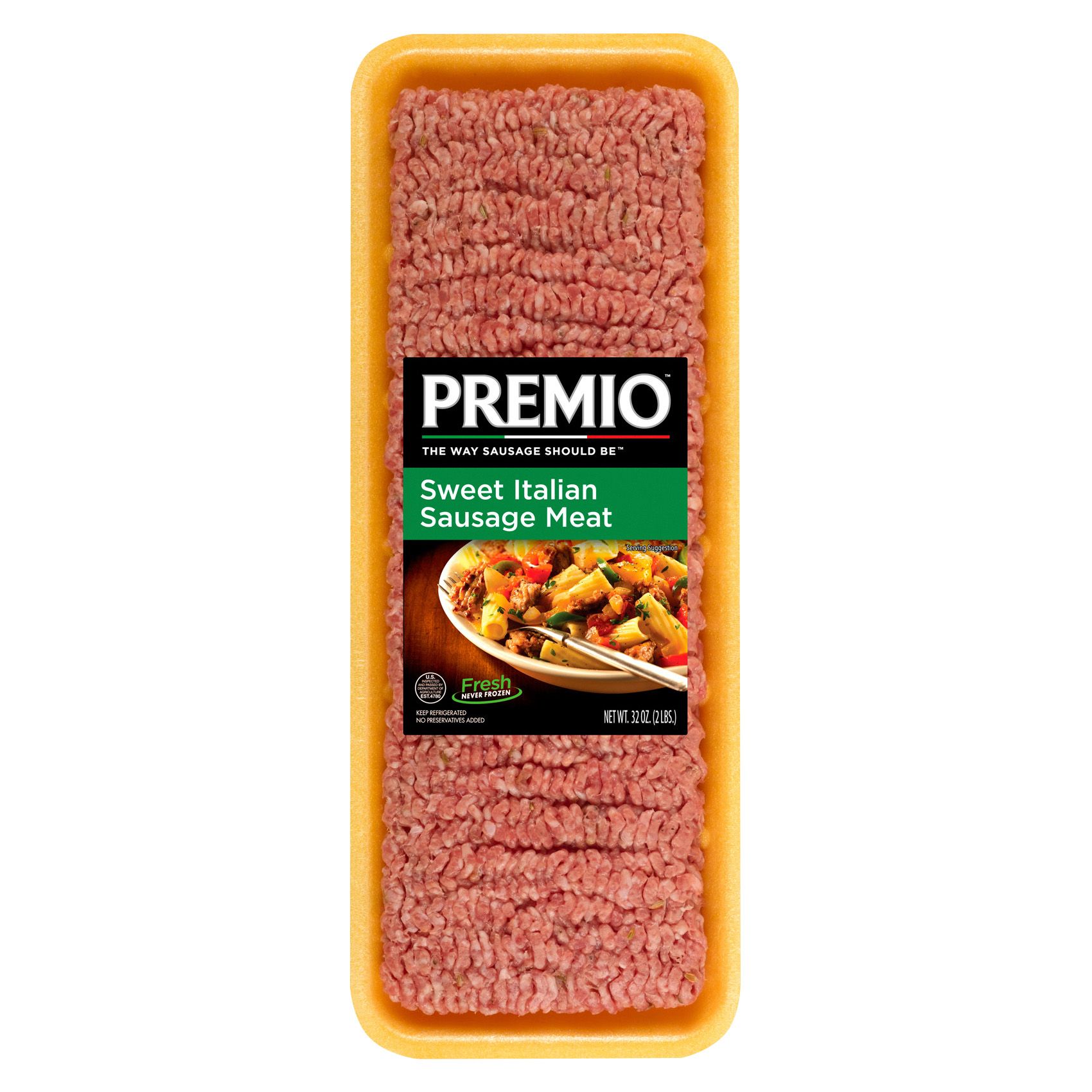Premio Sweet Italian Ground Sausage Meat. All natural, minimally processed and no artificial ingredients. Fresh, never frozen. No preservatives added. Gluten Free. Use ground meat for any recipe you want to remove the meat from the casings. Get yours today to taste the way sausage should be.