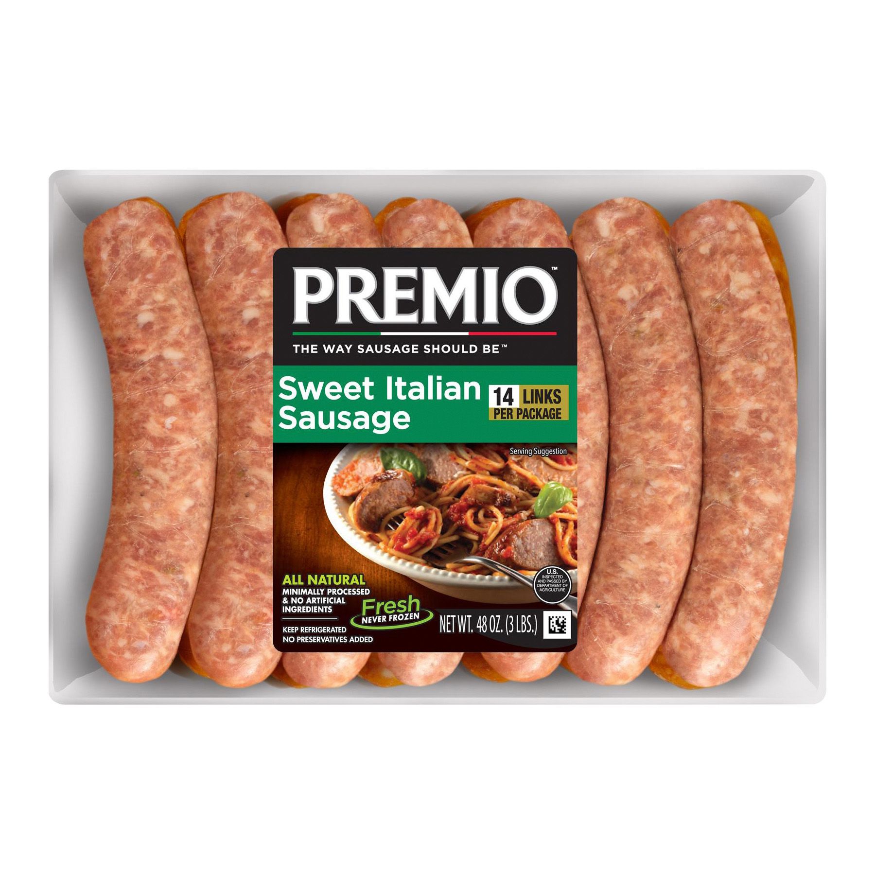 Made fresh with no filler preservatives, MSG or gluten, Premio Sweet Italian Sausage Links are a crowd favorite for any occasion. Serve this sausage in a sandwich, sliced up with peppers or alone and it will be sure to satisfy everyone's sweet sausage needs every time. Get yours today to taste the way sausage should be.