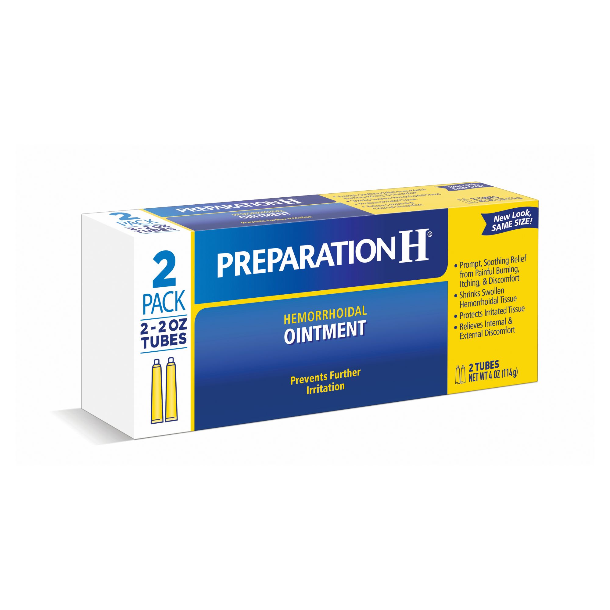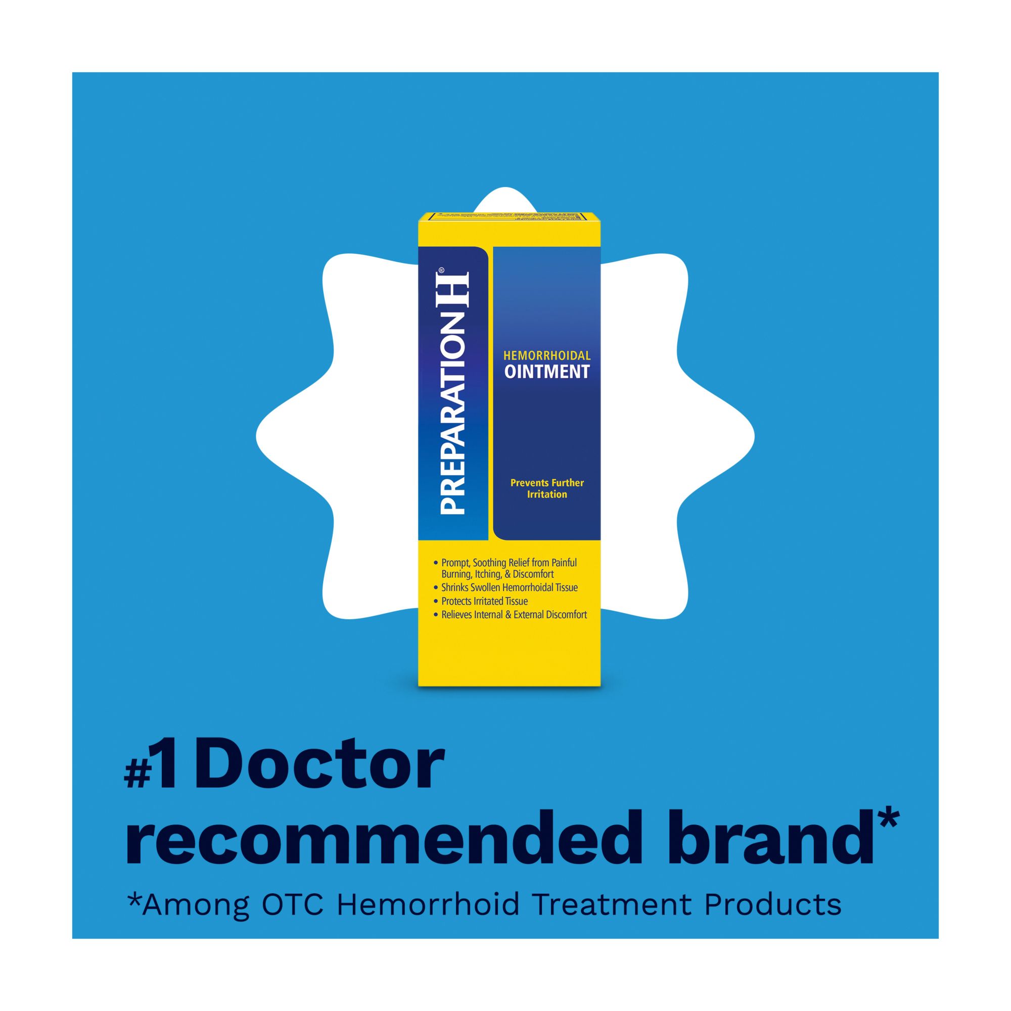 Is bum discomfort affecting your daily routine? Preparation H hemorrhoidal ointment relieves both internal and external hemorrhoid symptoms. Apply up to four times daily, especially at night, in the morning, and after each bowel movement, for prompt, soothing relief from hemorrhoid itching, burning and discomfort. Preparation H Ointment temporarily shrinks swollen hemorrhoidal tissue and also provides a soothing layer of protection against further skin irritation, so you can go about your day comfortably. Hemorrhoids are more common than you may think. A few of the most prevalent causes of hemorrhoid flare-ups are straining when using the bathroom, pregnancy or childbirth, and genetics. Symptoms vary from person to person and can include anus itching, pain or discomfort. Trust Preparation H, the #1 selling hemorrhoid brand (1), to relieve your uncomfortable symptoms of hemorrhoids. And for better relief, add Preparation H Medicated Wipes to cool, soothe and cleanse before treating with Preparation H Ointment. NET WT 2 OZ (57g) (1) IRI retail sales data supports that Preparation H is the #1 selling hemorrhoid brand in the U.S. (52 weeks ending August 13, 2017). (2) Provoice survey dated from May 2015-August 2017 supports Preparation H is the #1 doctor recommend brand.