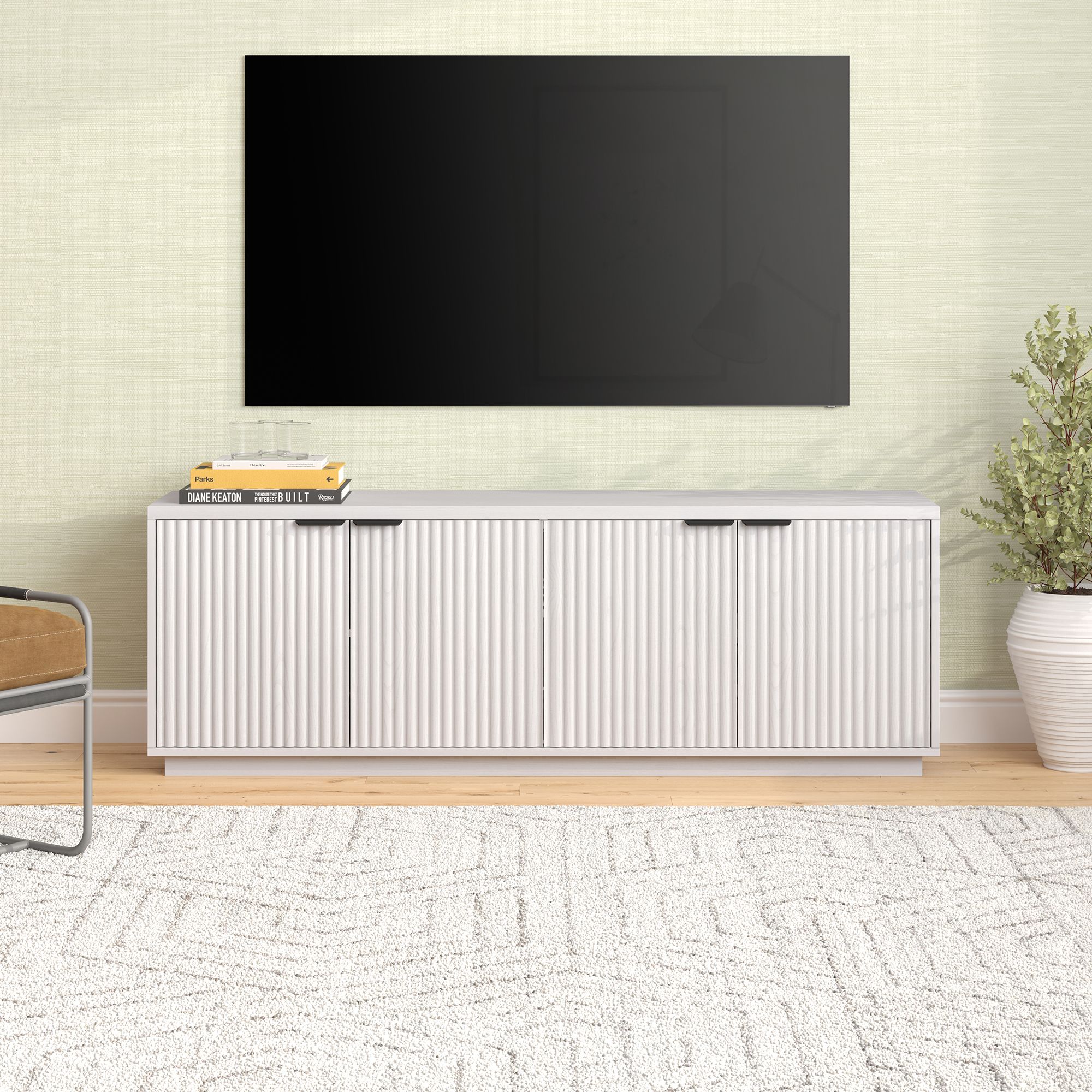 Presque Rectangular TV Stand for TV's up to 75" with 26" Crystal Fireplace (Select Color)
