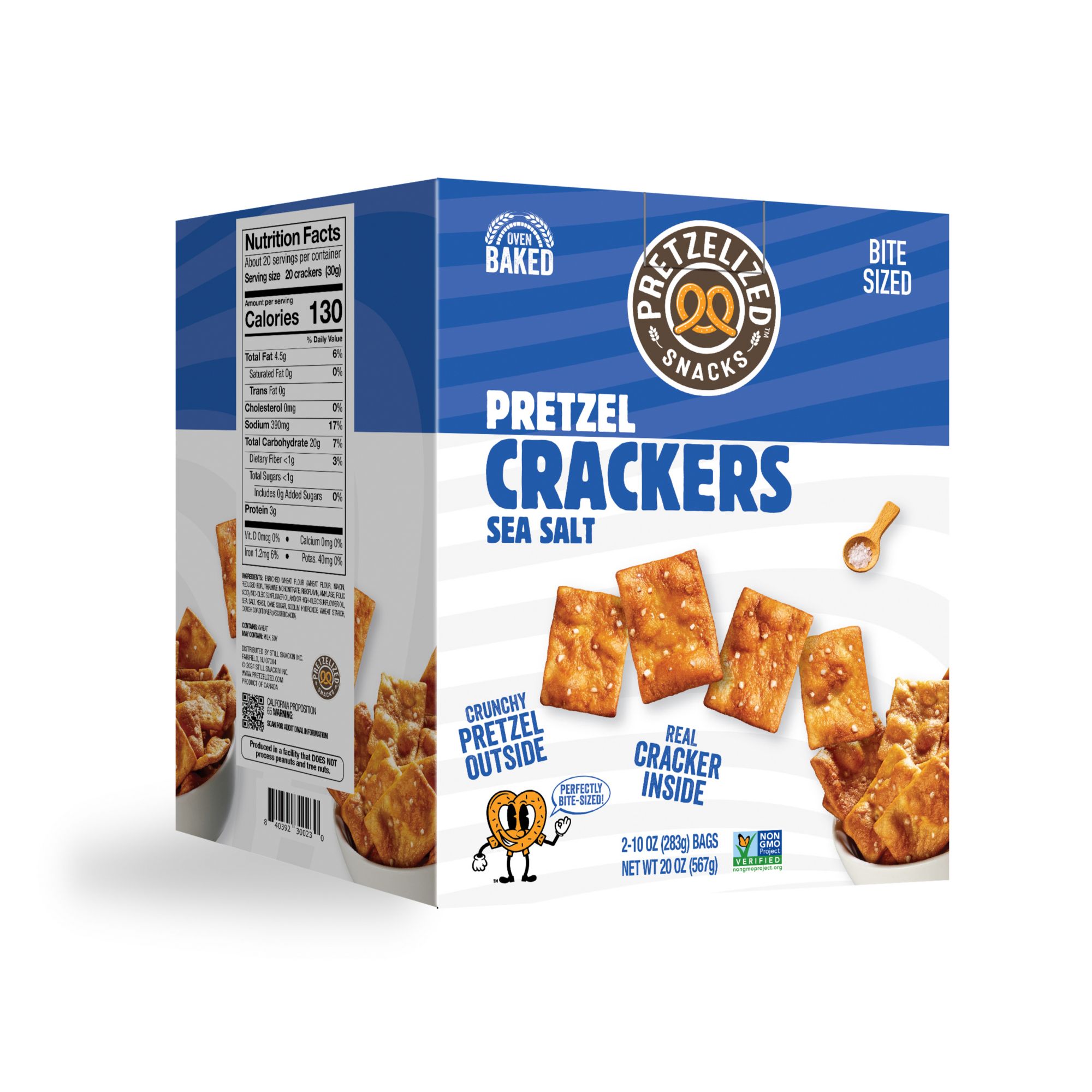 Includes pretzel cracker snacks, 20 oz.