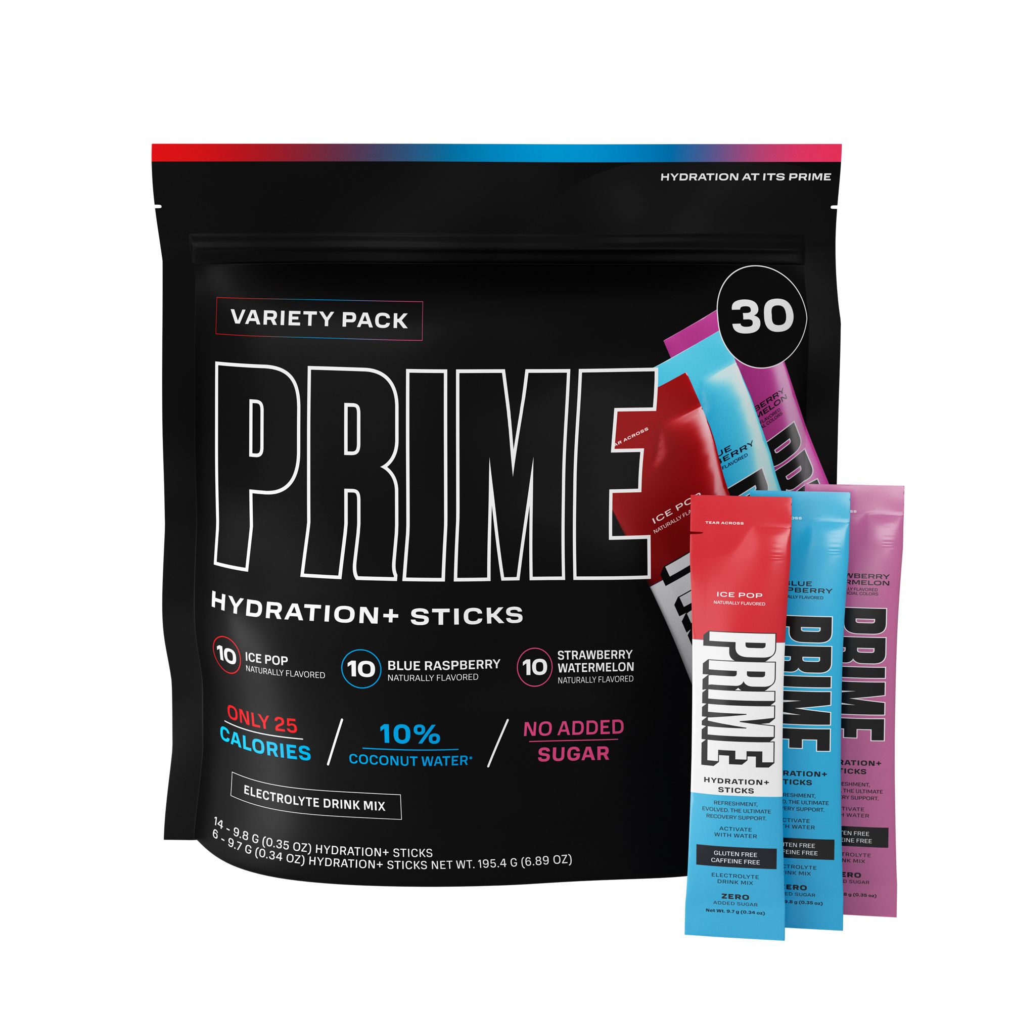 Break boundaries with Prime Hydration+ Sticks with your favorite flavors in this variety pack. Great for the gym, the game, or wherever your next endeavor takes you, Prime Hydration packs each pocket-sized stick with their iconic thirst-quenching fusion and intensely refreshing flavors. Activate with 16 fl. oz. of water, hydrate to the max, then start making moves.