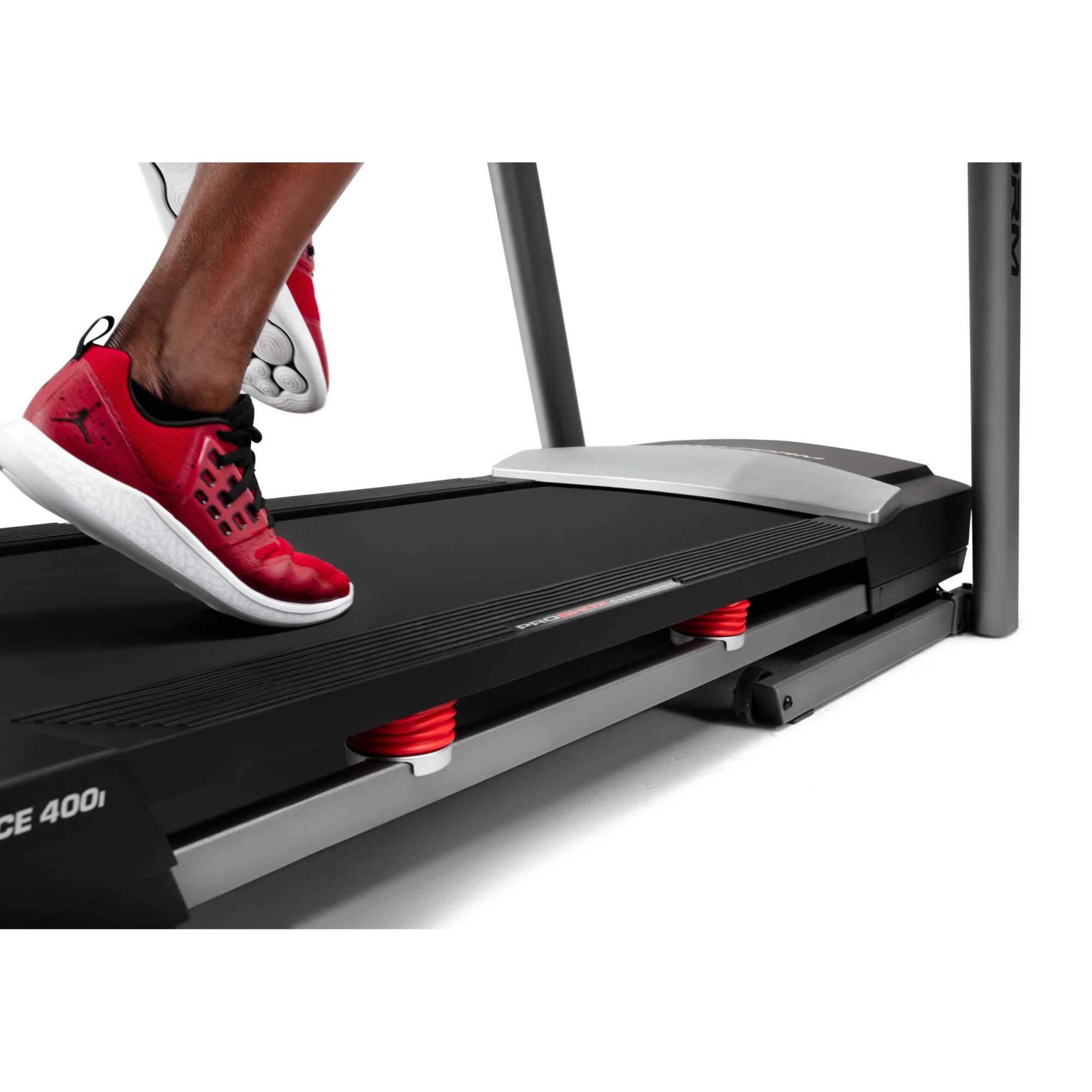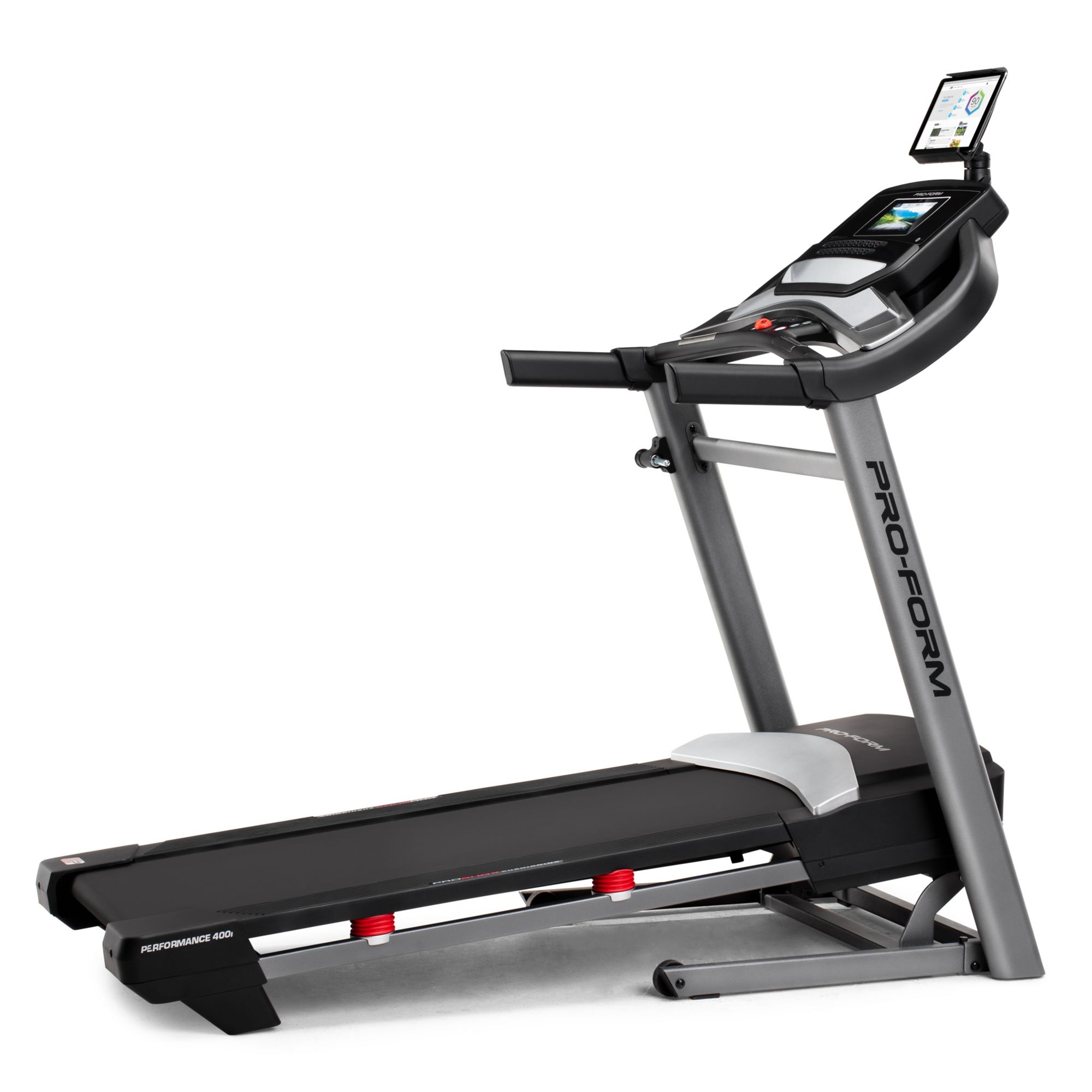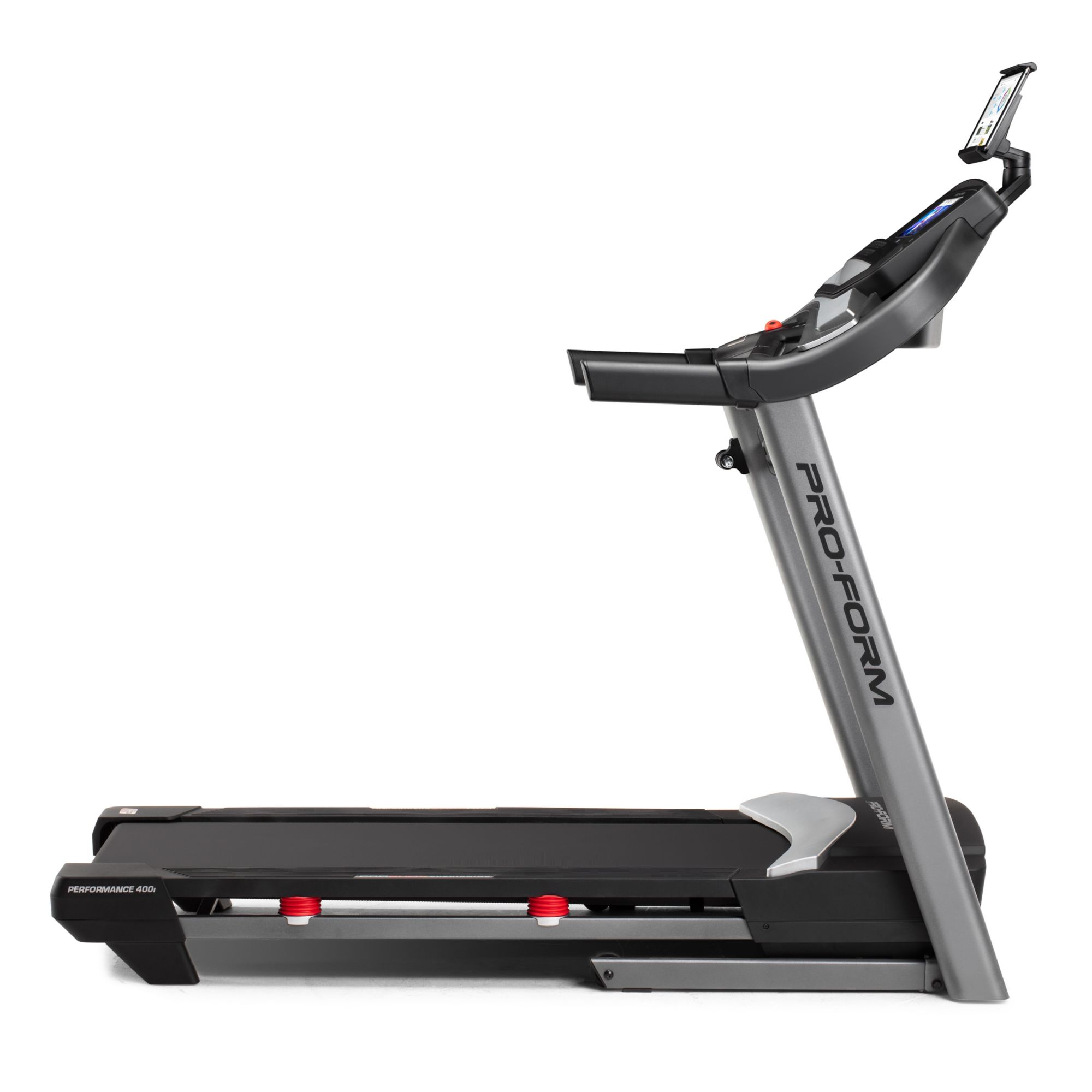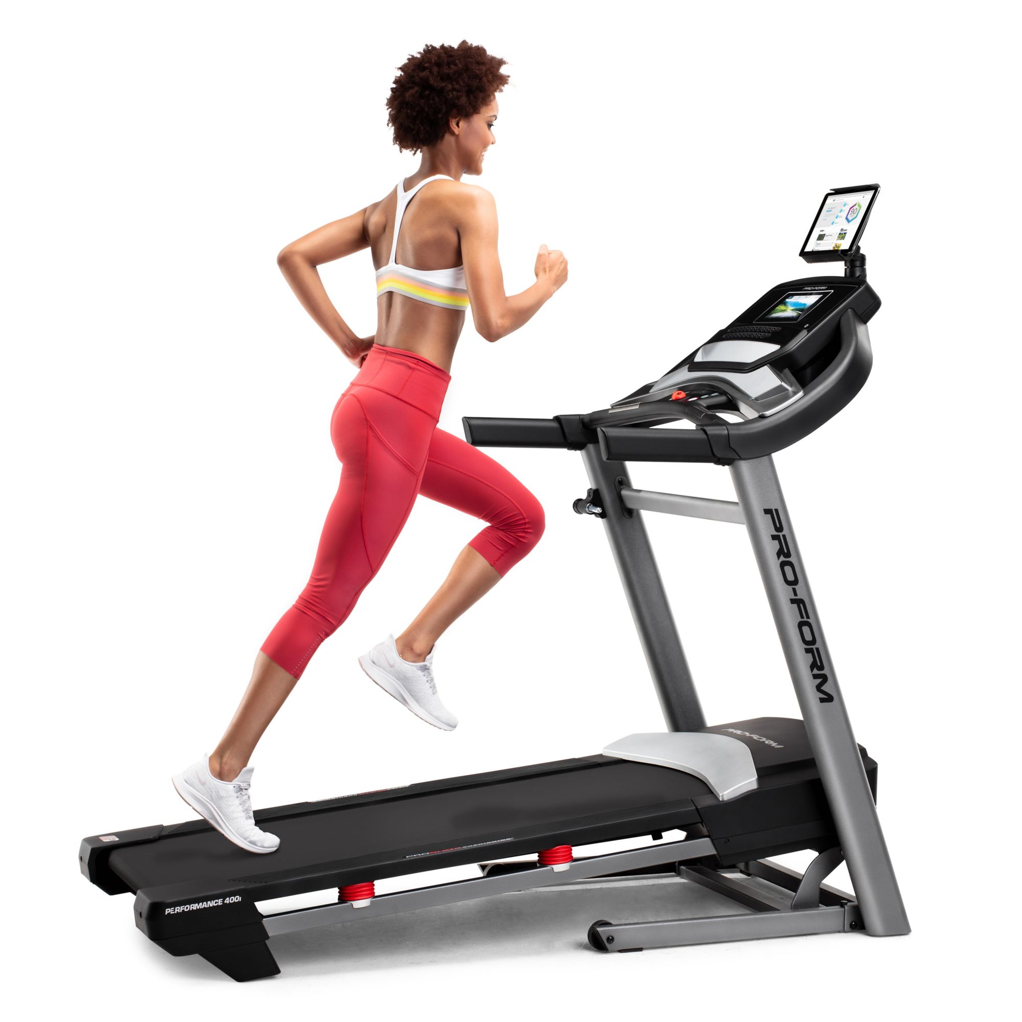Add intensity to your workout with the Proform Performance 400i Treadmill. Activate the 1-year iFit membership to elevate your experience and unlock the interactive personal training right in your own home. Set off on a virtual trek around the world following your favorite iFit trainer, or transform your living room into a studio class engaging with your own iFit trainer. A 7" full color touchscreen display allows you to keep track of your workout stats and digital quick speed and incline controls allow you to jump to 10 mph or a 10% incline, all with a touch of a button. A durable 2.00 CHP motor with speed ranges of 0 to 10 mph will keep you going.