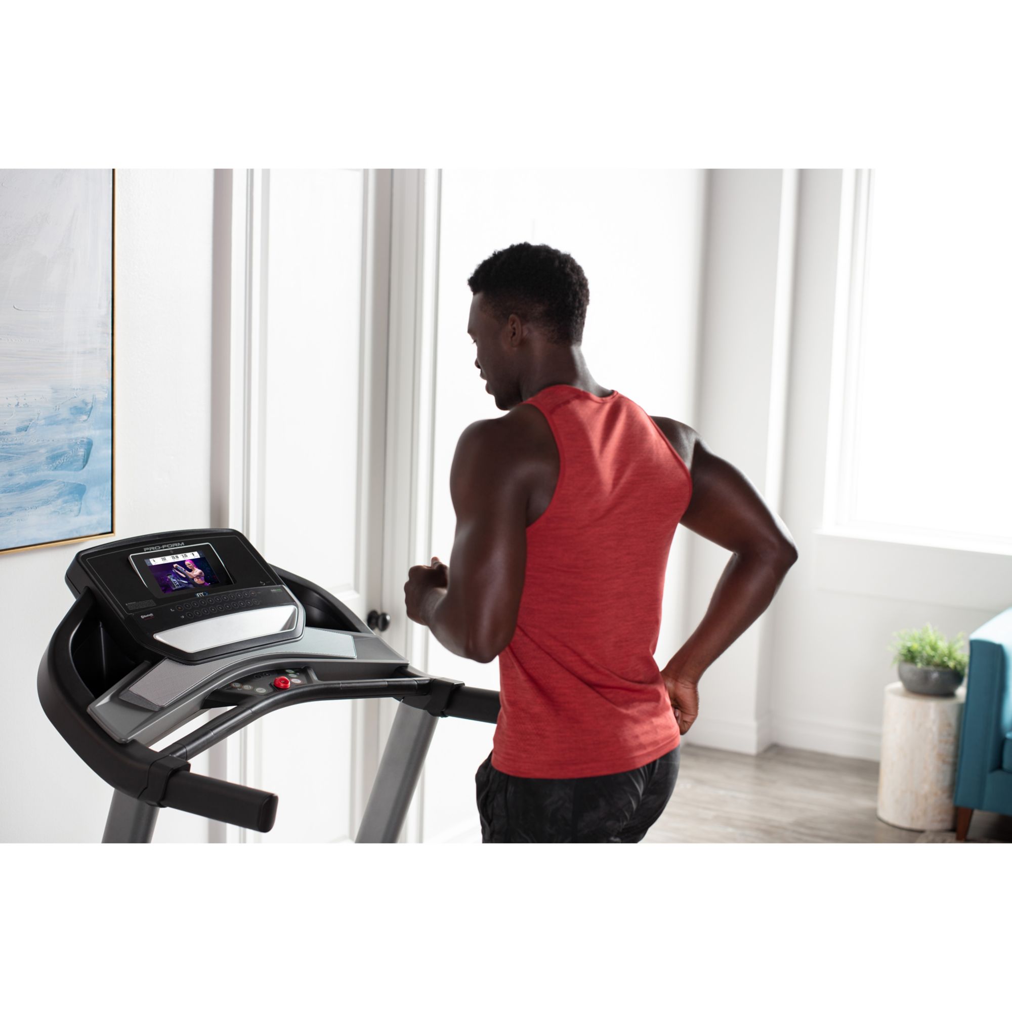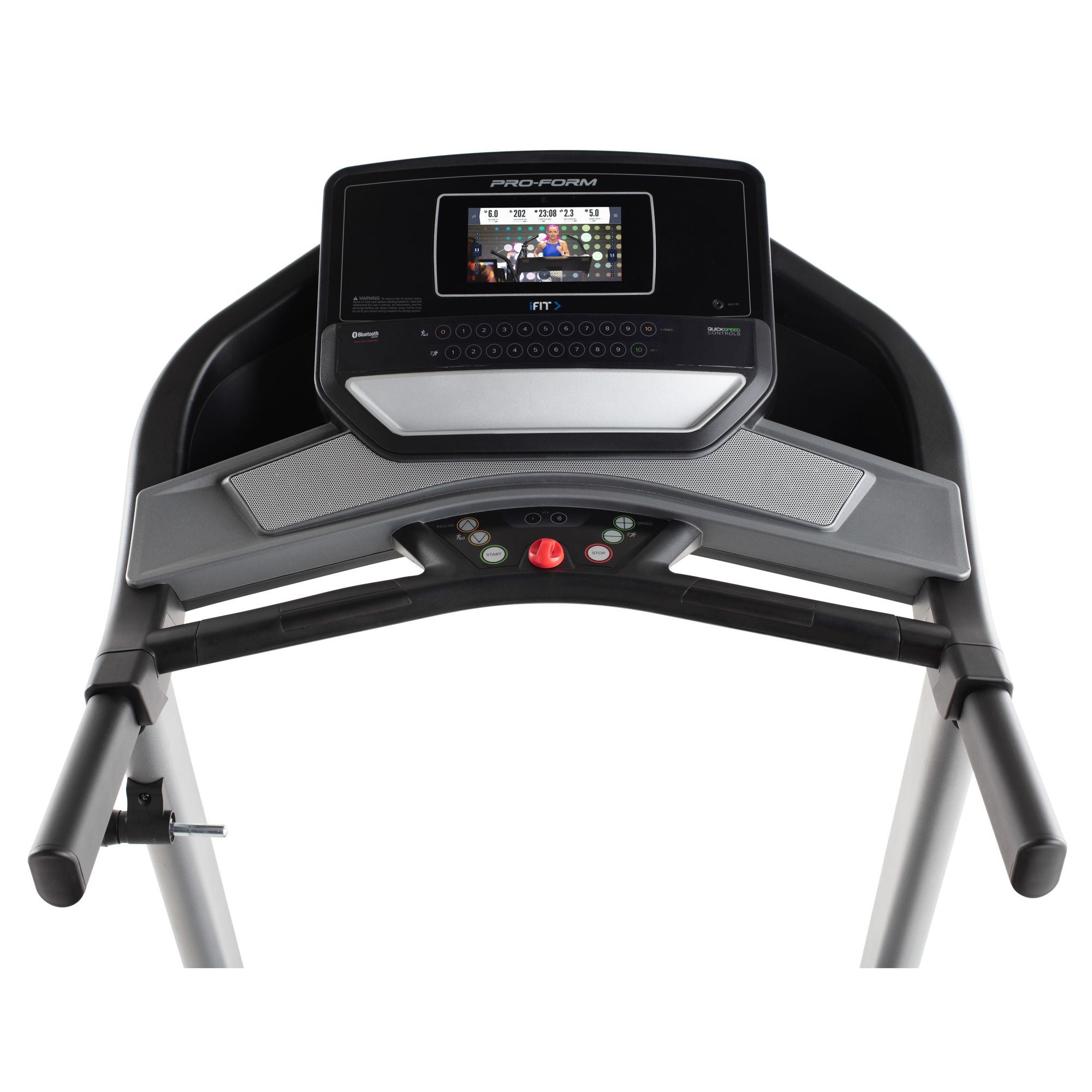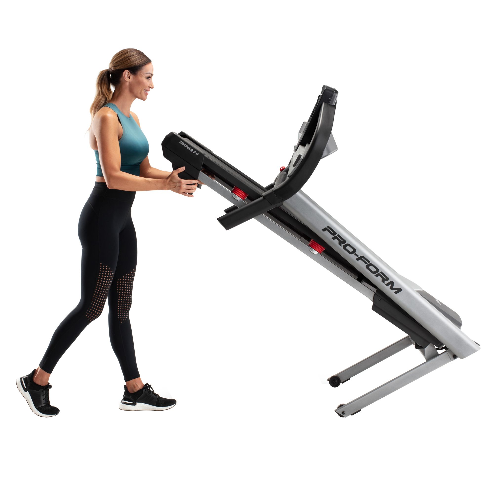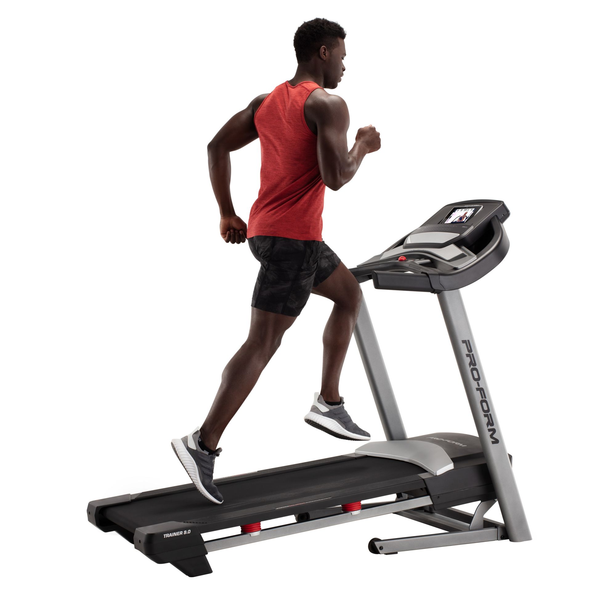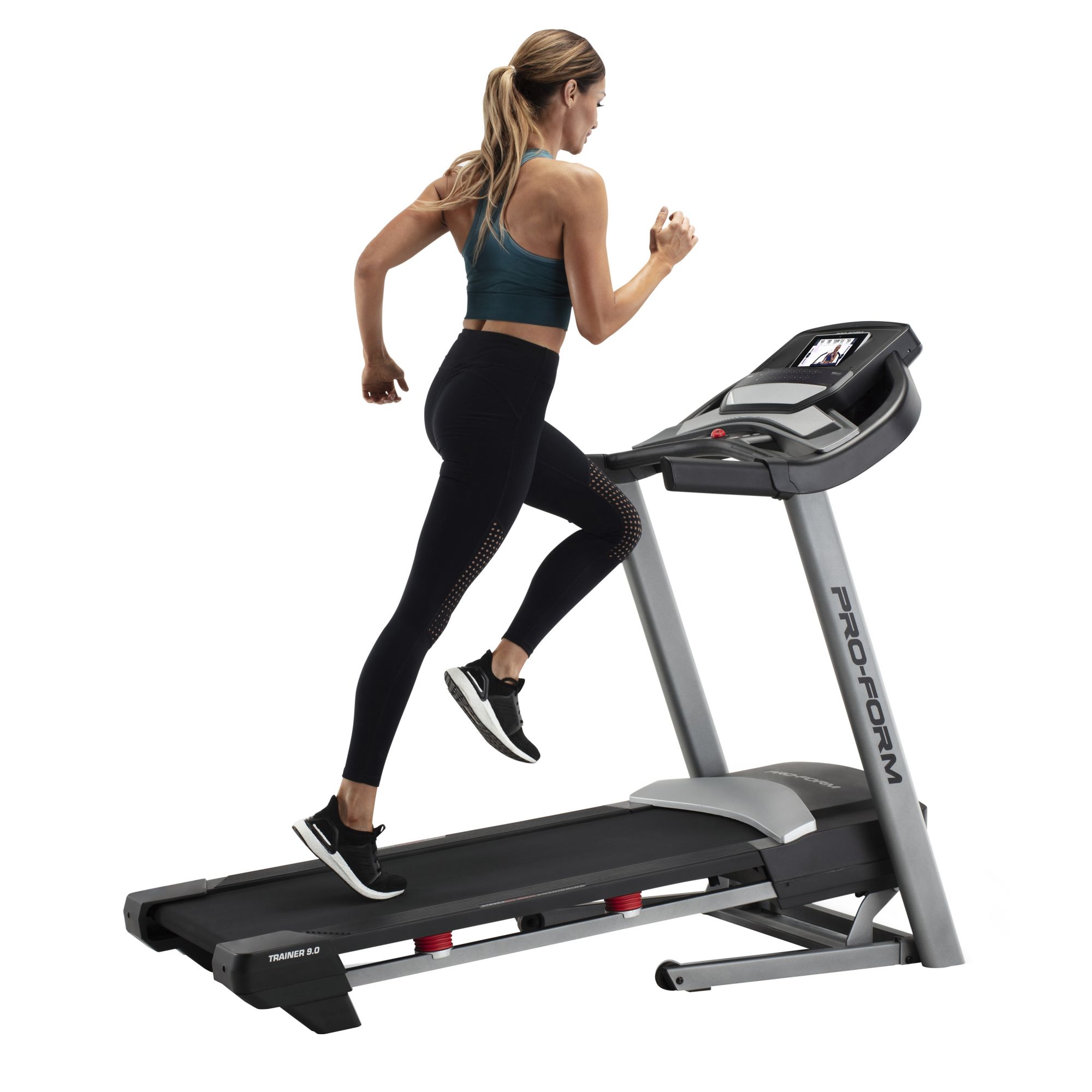 The Proform Trainer 9.0 Treadmill is the perfect at-home solution for taking on intense training without leaving your home. Technologically advanced and Bluetooth enabled, it features built-in heart monitors, a 7" display, adjustable speed and incline functions and ProShox cushioning, make your run more controlled and comfortable, so you can stay focused on your goals. With its convenient SpaceSaver design, the Proform Trainer 9.0 Treadmill easily fits into any home gym room and folds away when you’re done.