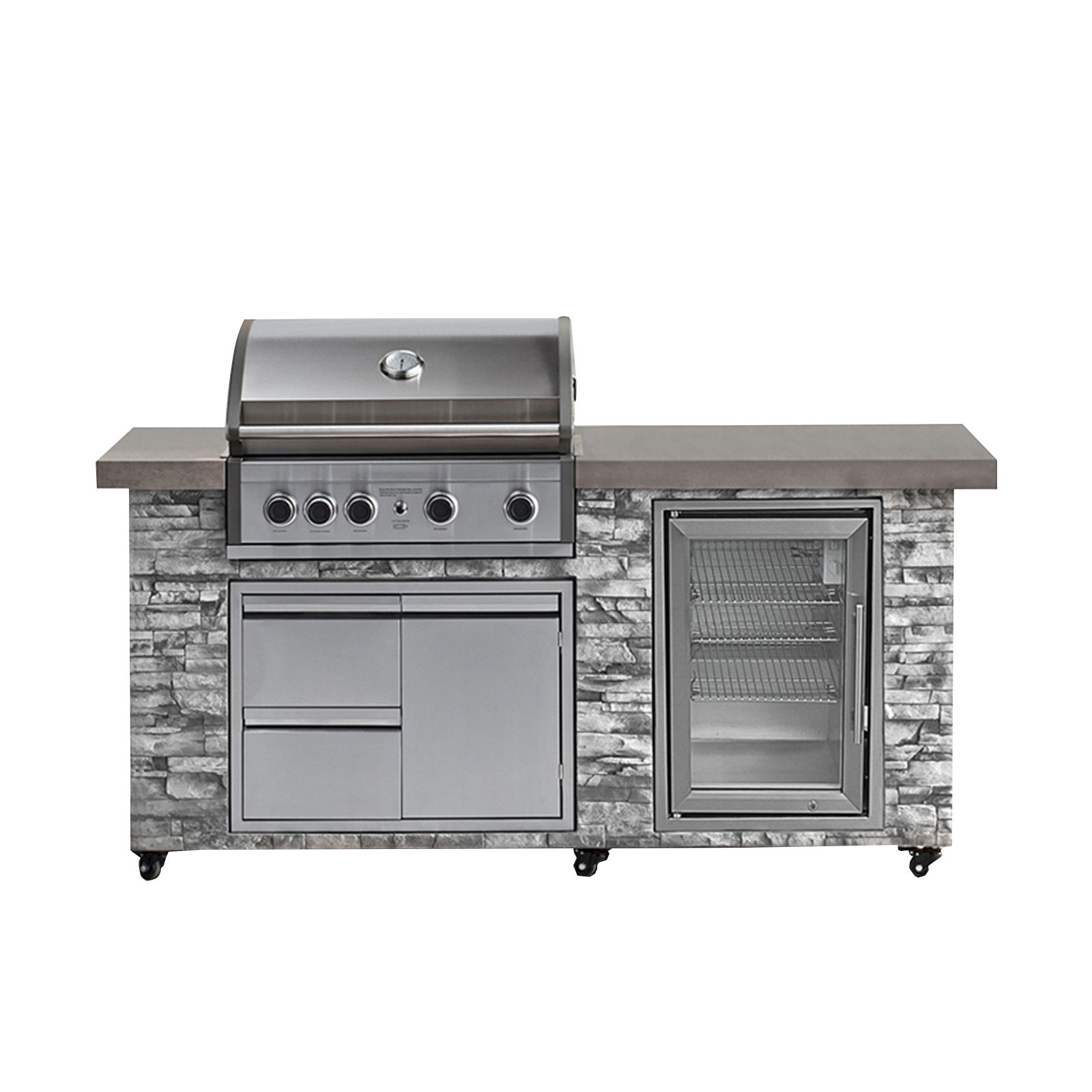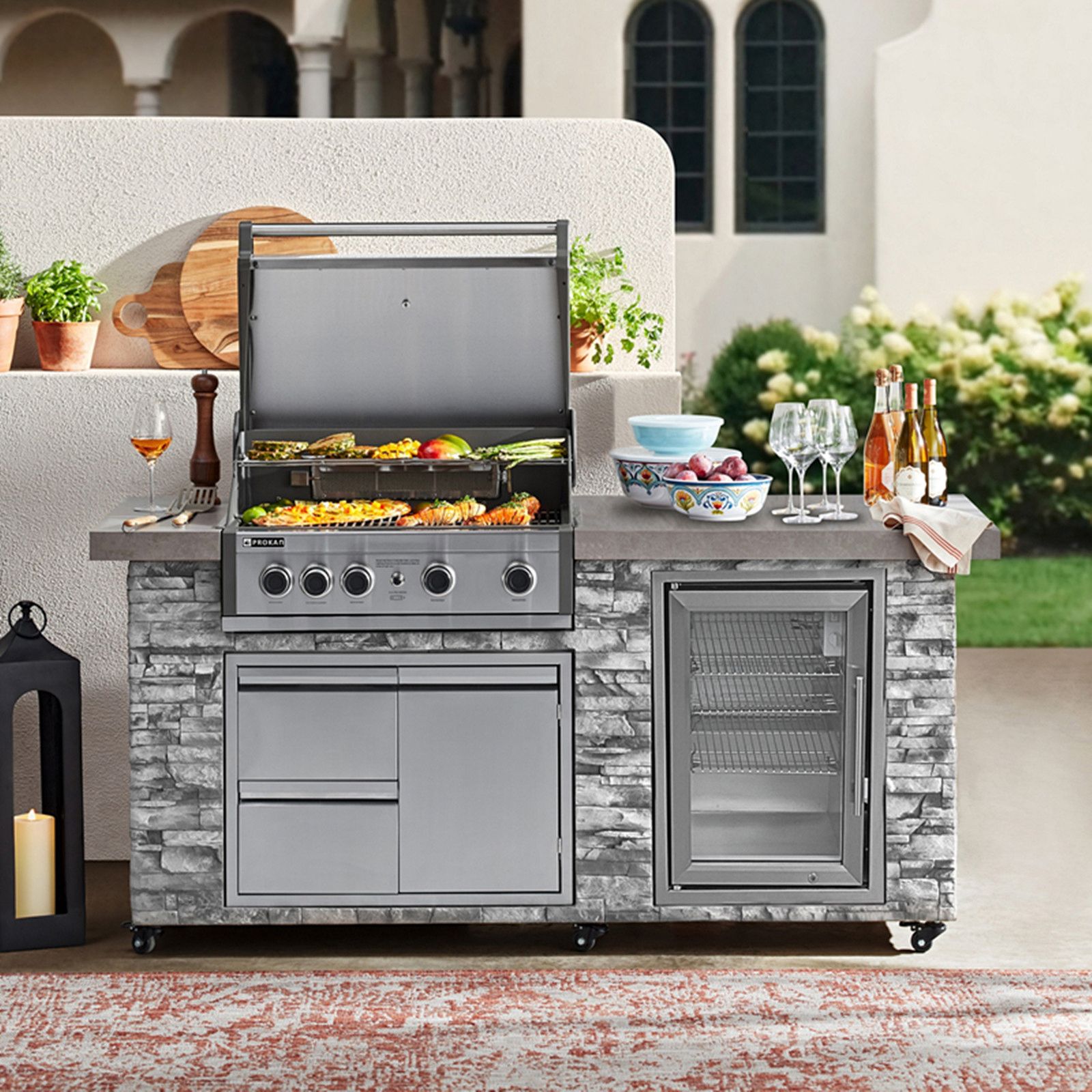 Prokan Pro Elite 5-Burner Gas European Ledge Island Grill - Gray