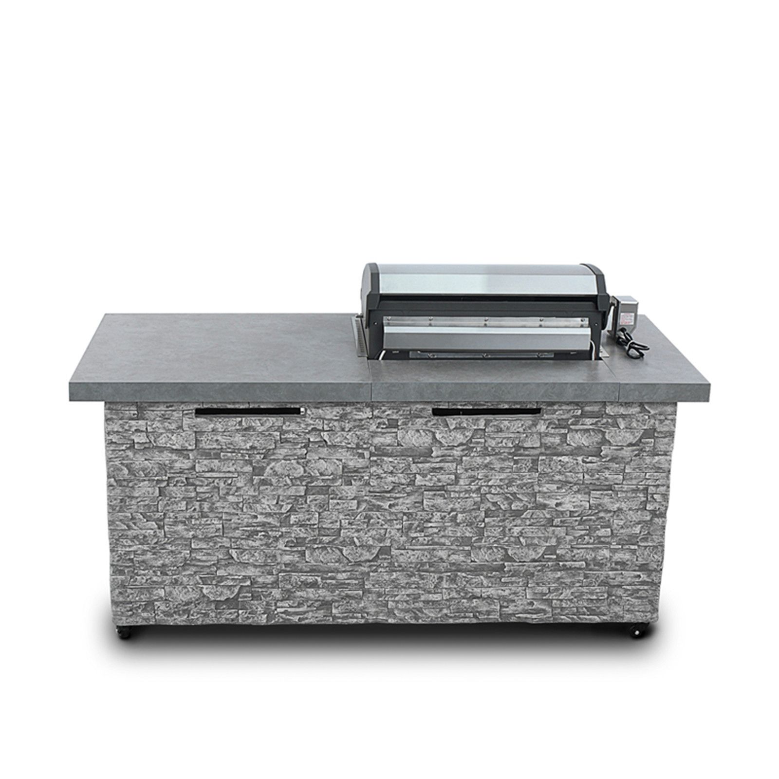 Get cooking with the 78” Pro Elite 5B European ledge-stacked stone island grill. This fully loaded 52,000 BTU outdoor kitchen and grill makes it easy to prepare delicious grilled meals and host first-rate cookouts for your friends and family. The modern grill island is equipped with four powerful 304 Stainless Steel burners and a dedicated infrared rear burner, giving you plenty of cooking area. The slab stone countertop offers flexible and easy-to-use space for steaks, burgers, fresh veggies, and more.