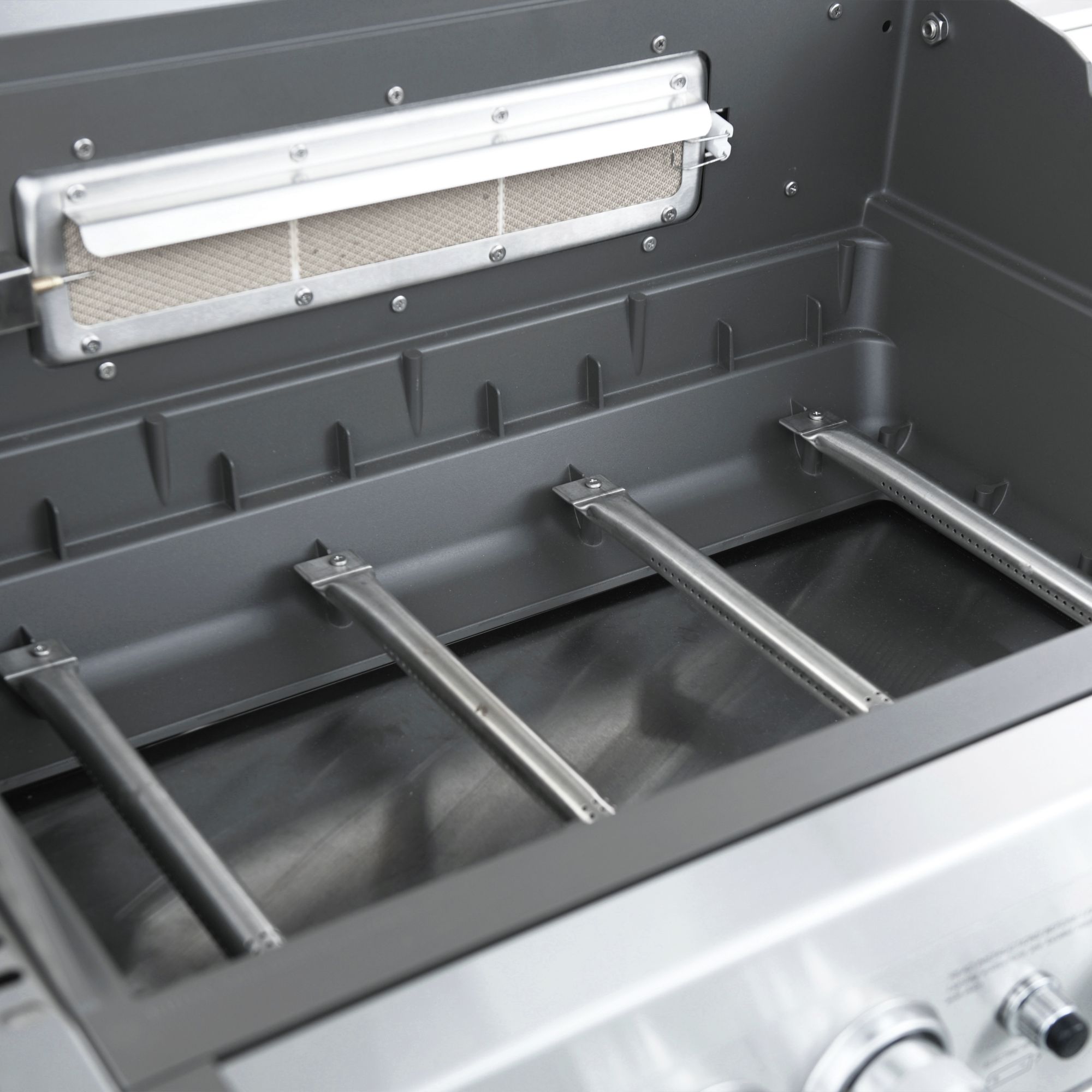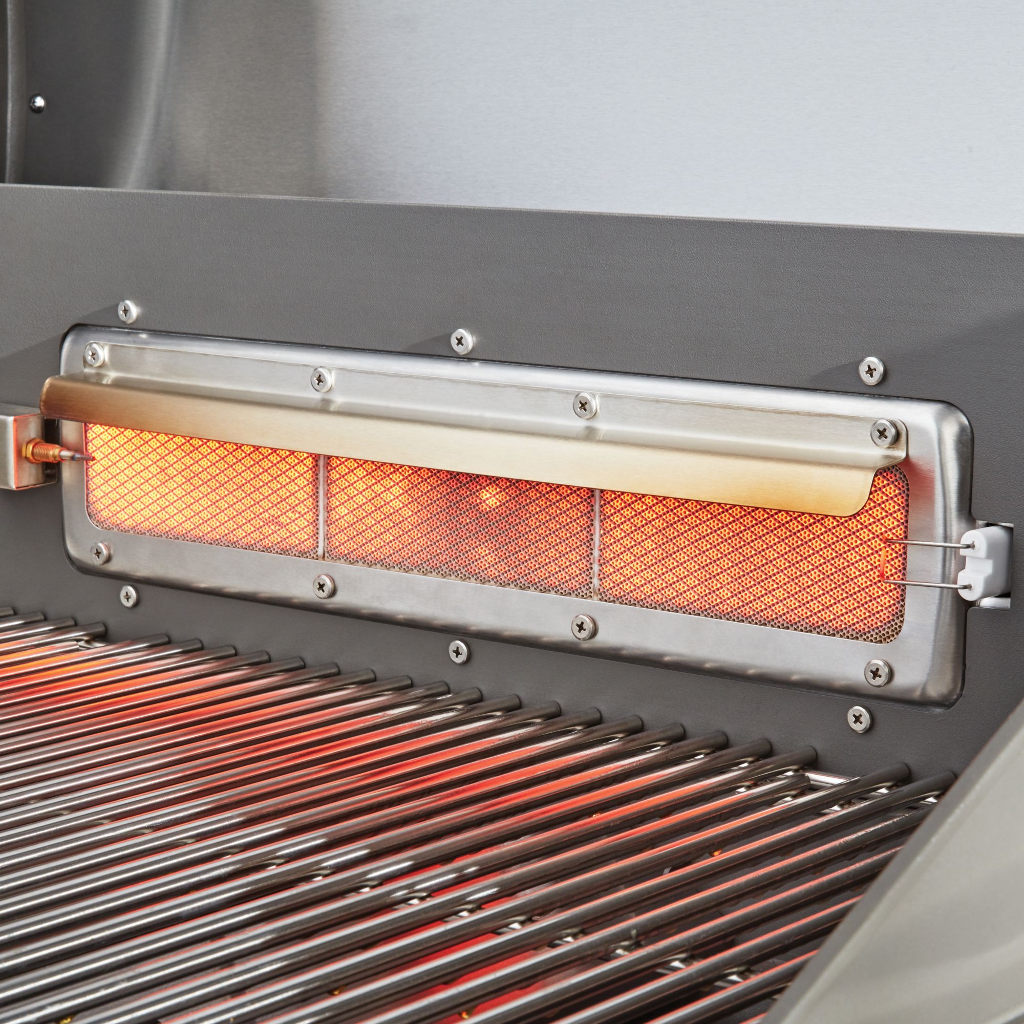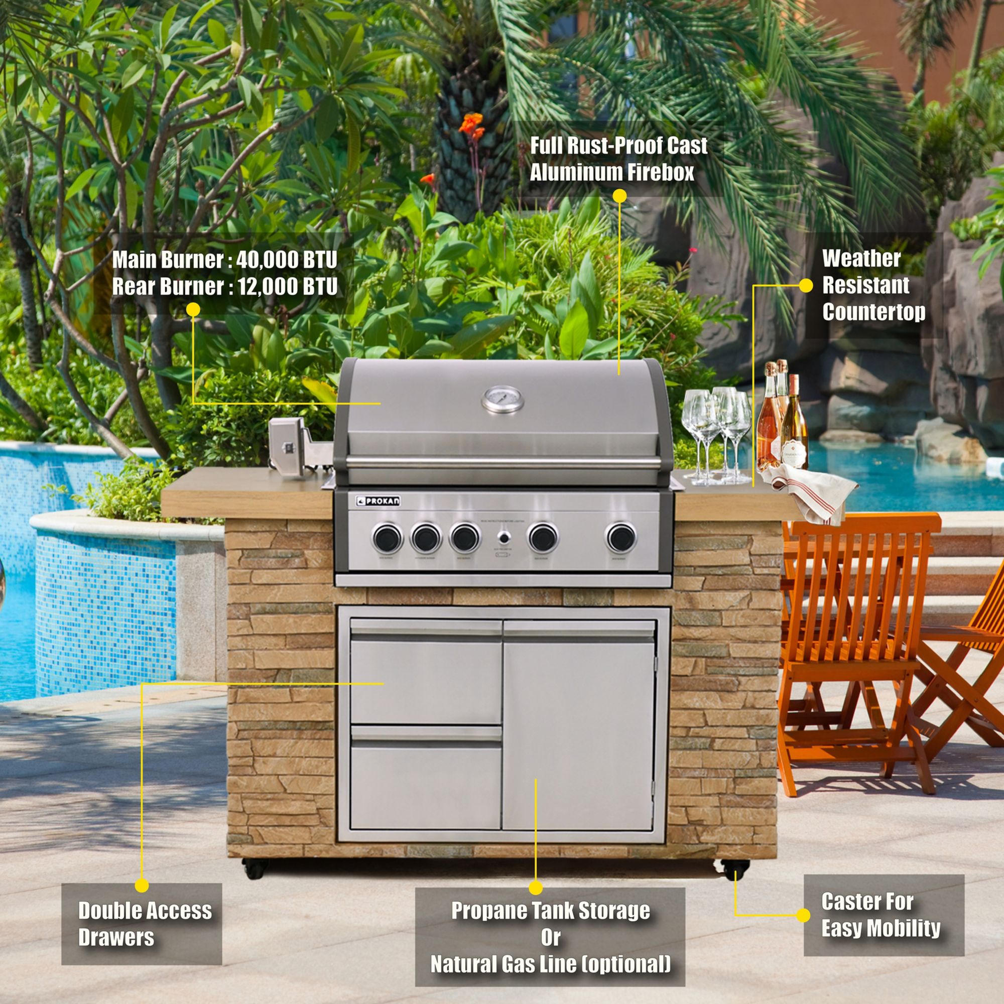 ● 12,000 BTU rear infrared burner and SS304 rotisserie kit for roasting
