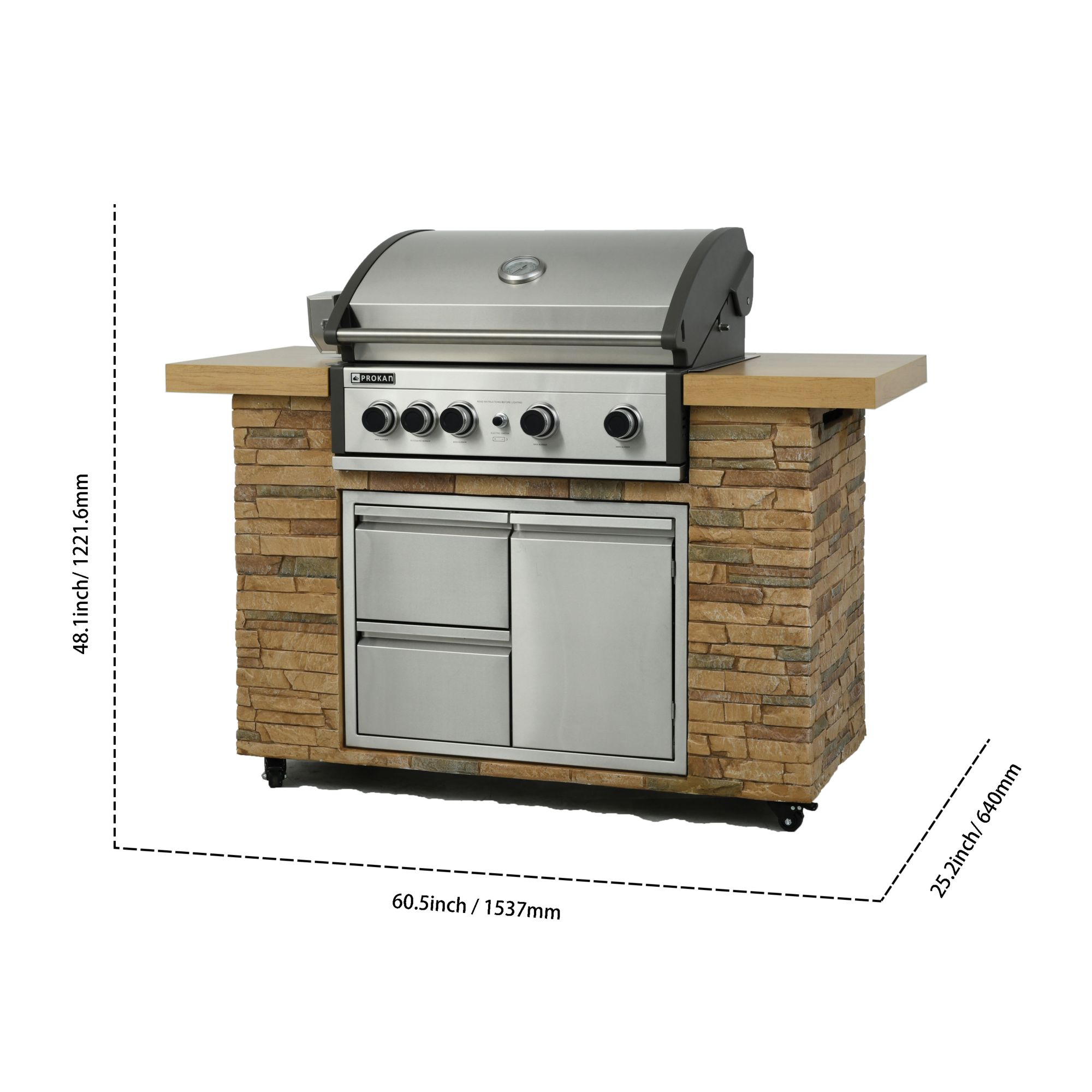 Prokan Pro Elite 5-Burner Gas Q Island Grill - Golden White