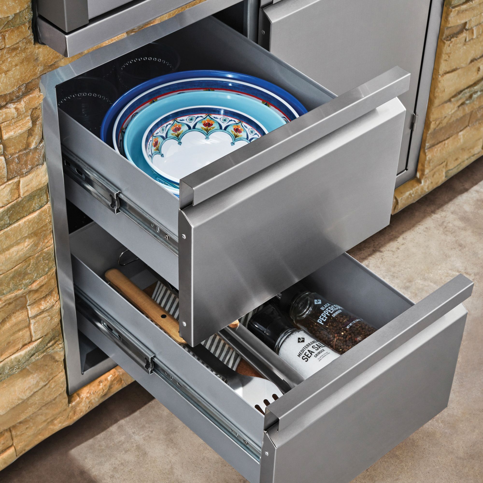 Includes grill, double access drawer