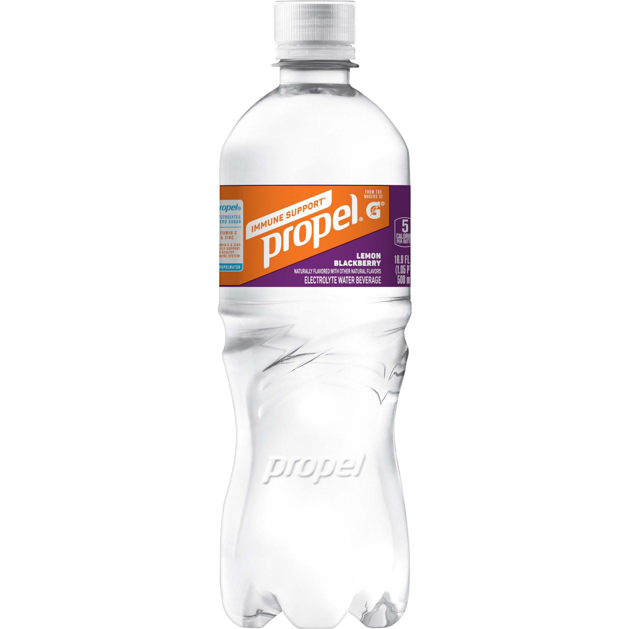 Includes (24) 16.9 oz. bottles of Propel Immune Support with Vitamin C and Zinc: 8 bottles each of Lemon Blackberry, Orange Raspberry and Pineapple Peach flavors
