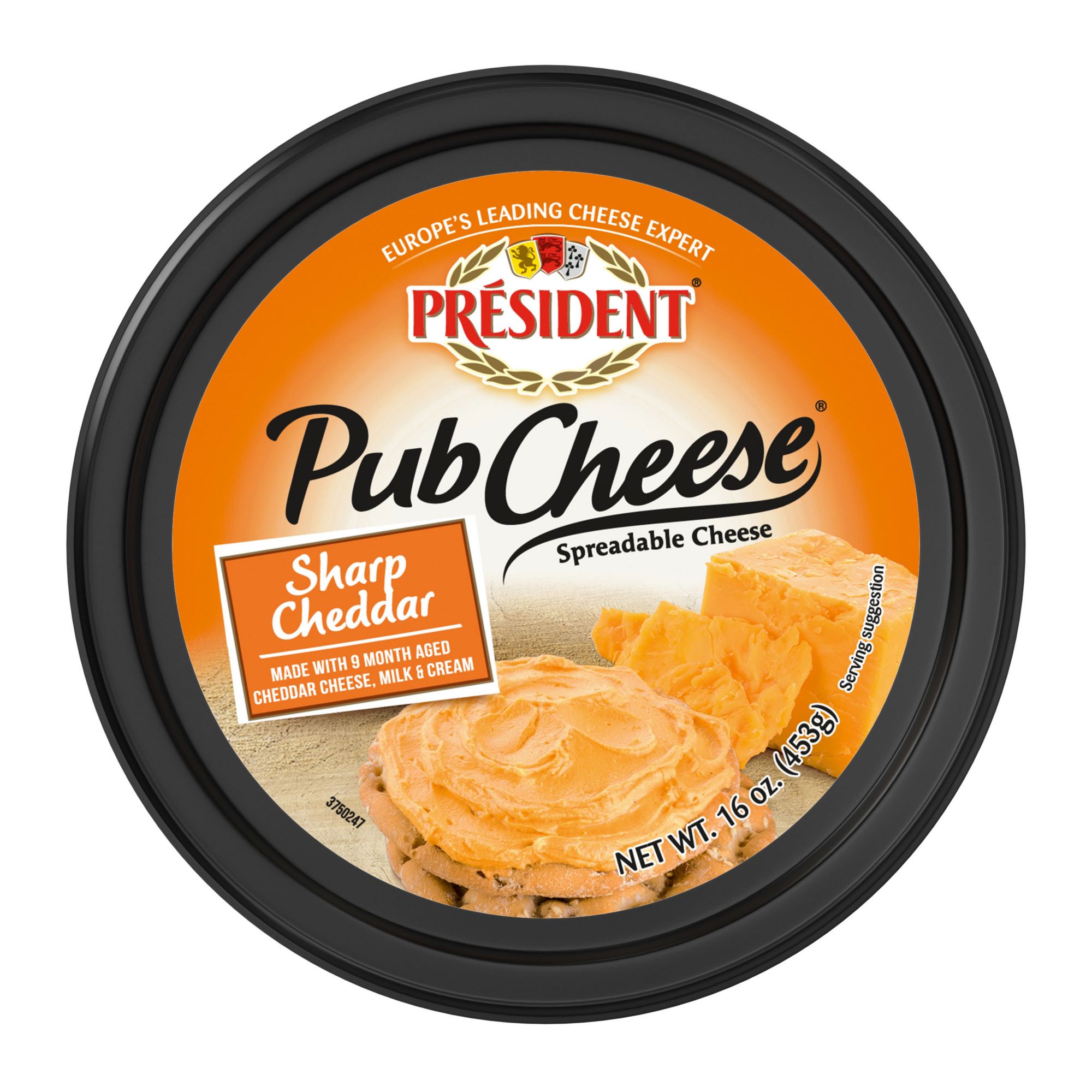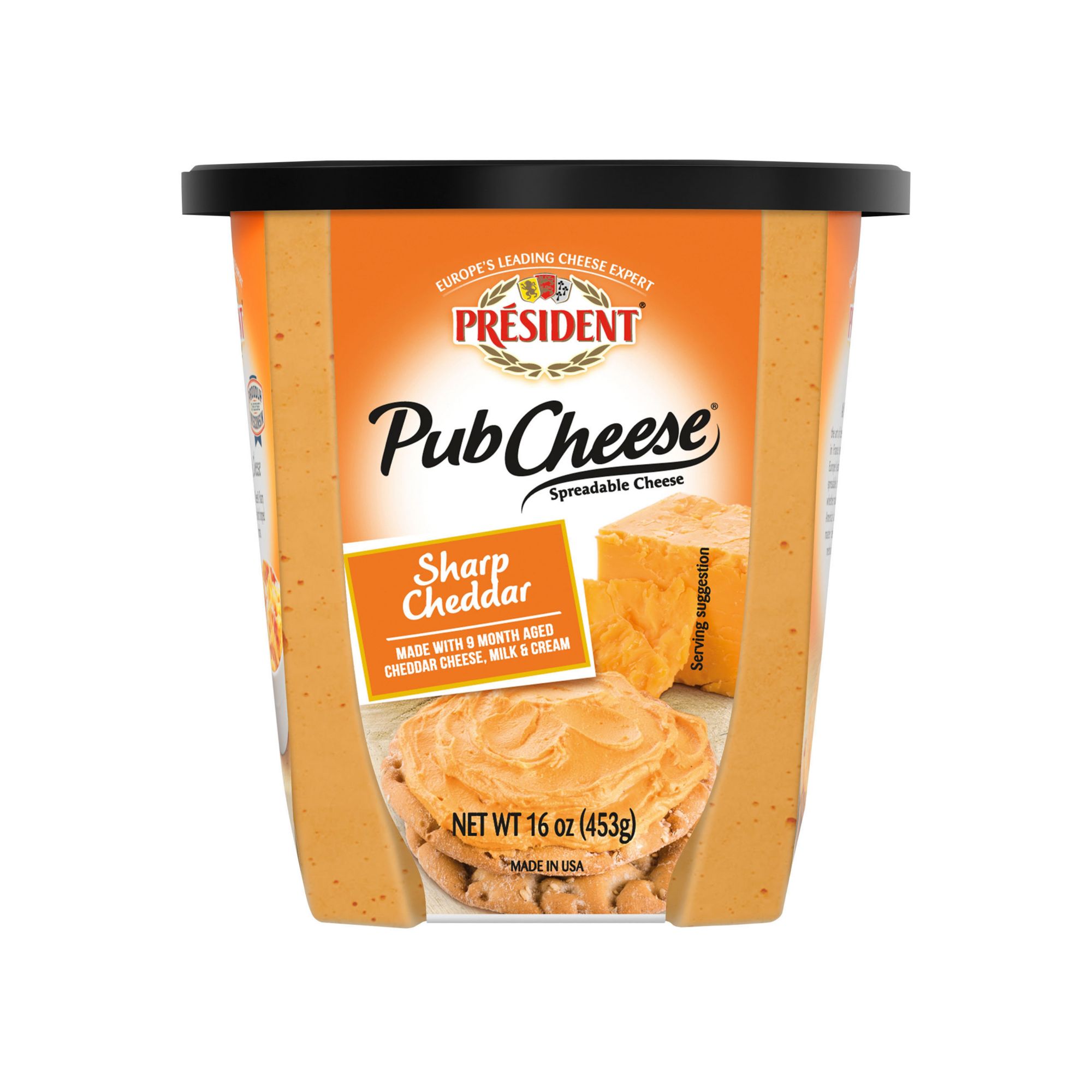 (1) Pub Cheese by Président Sharp Cheddar Spreadable Cheese & Dip, 16 oz.
